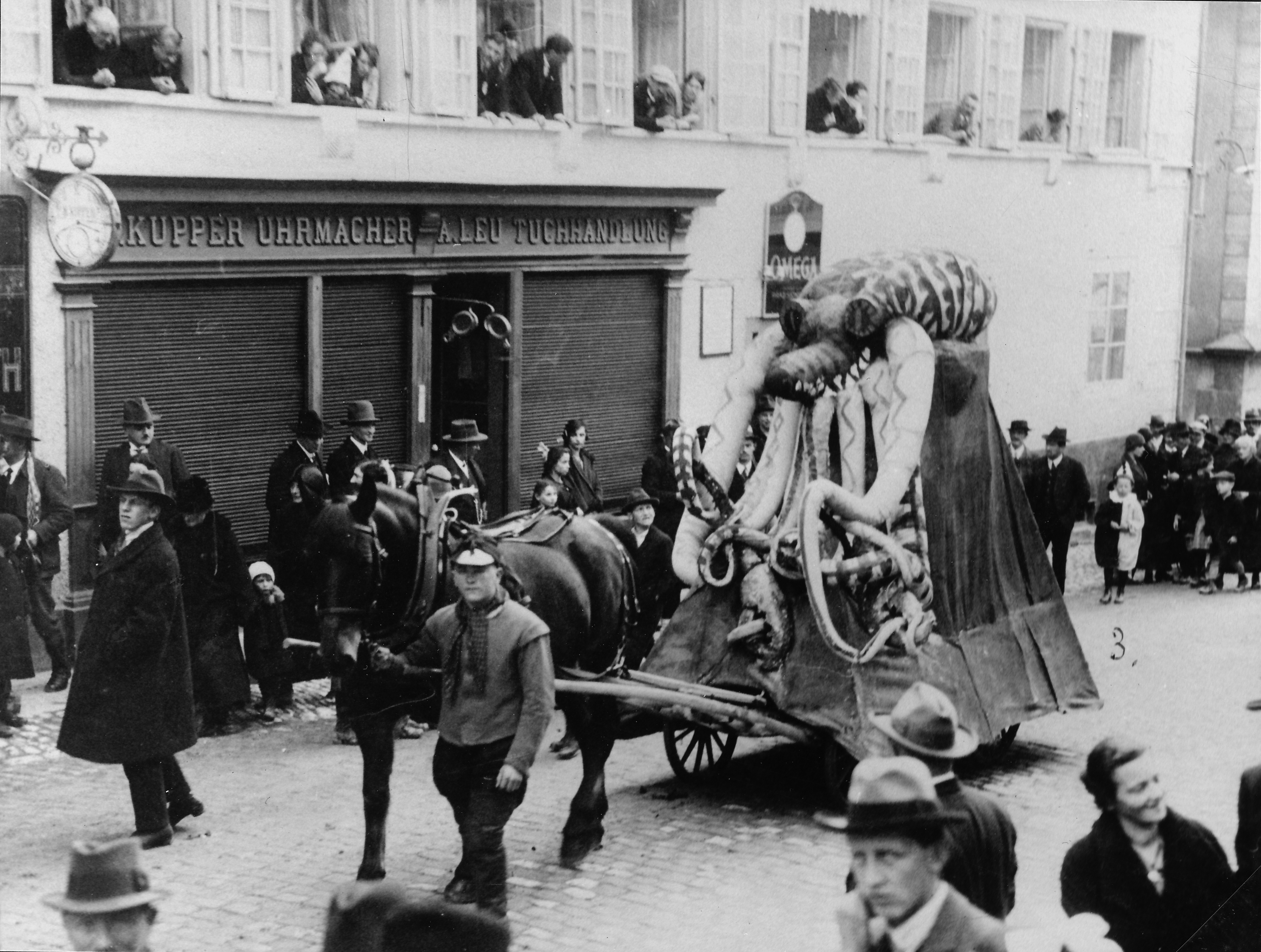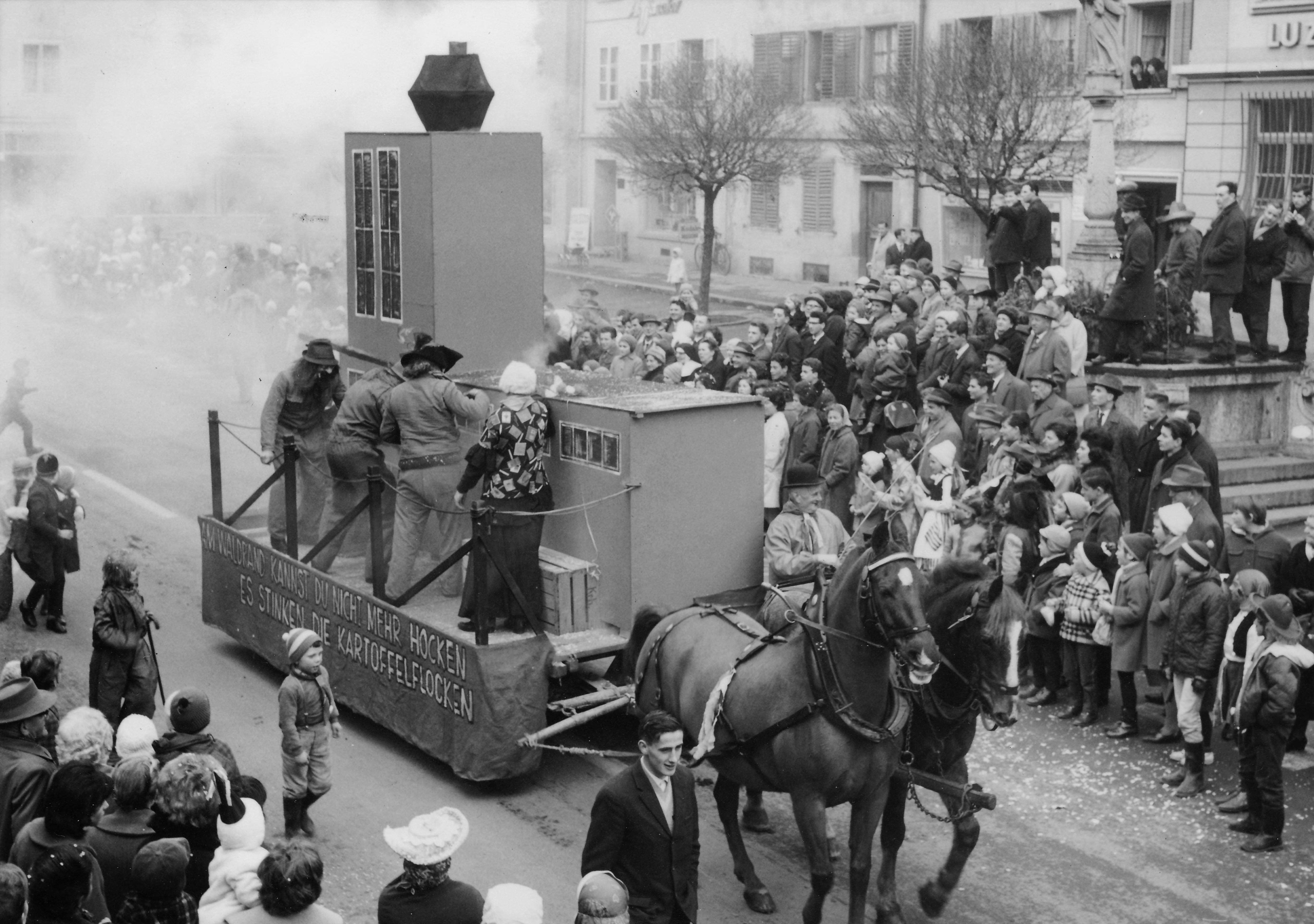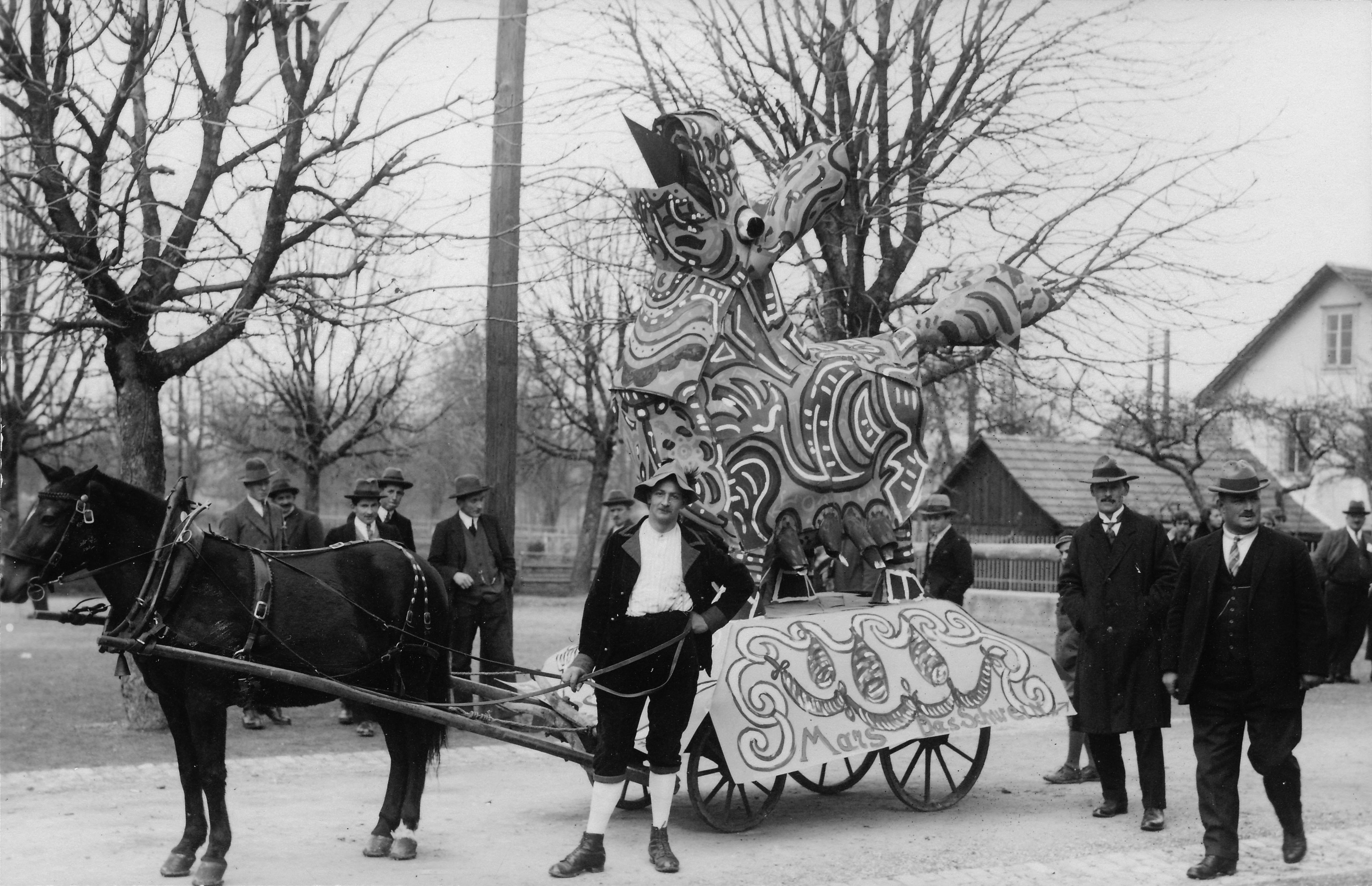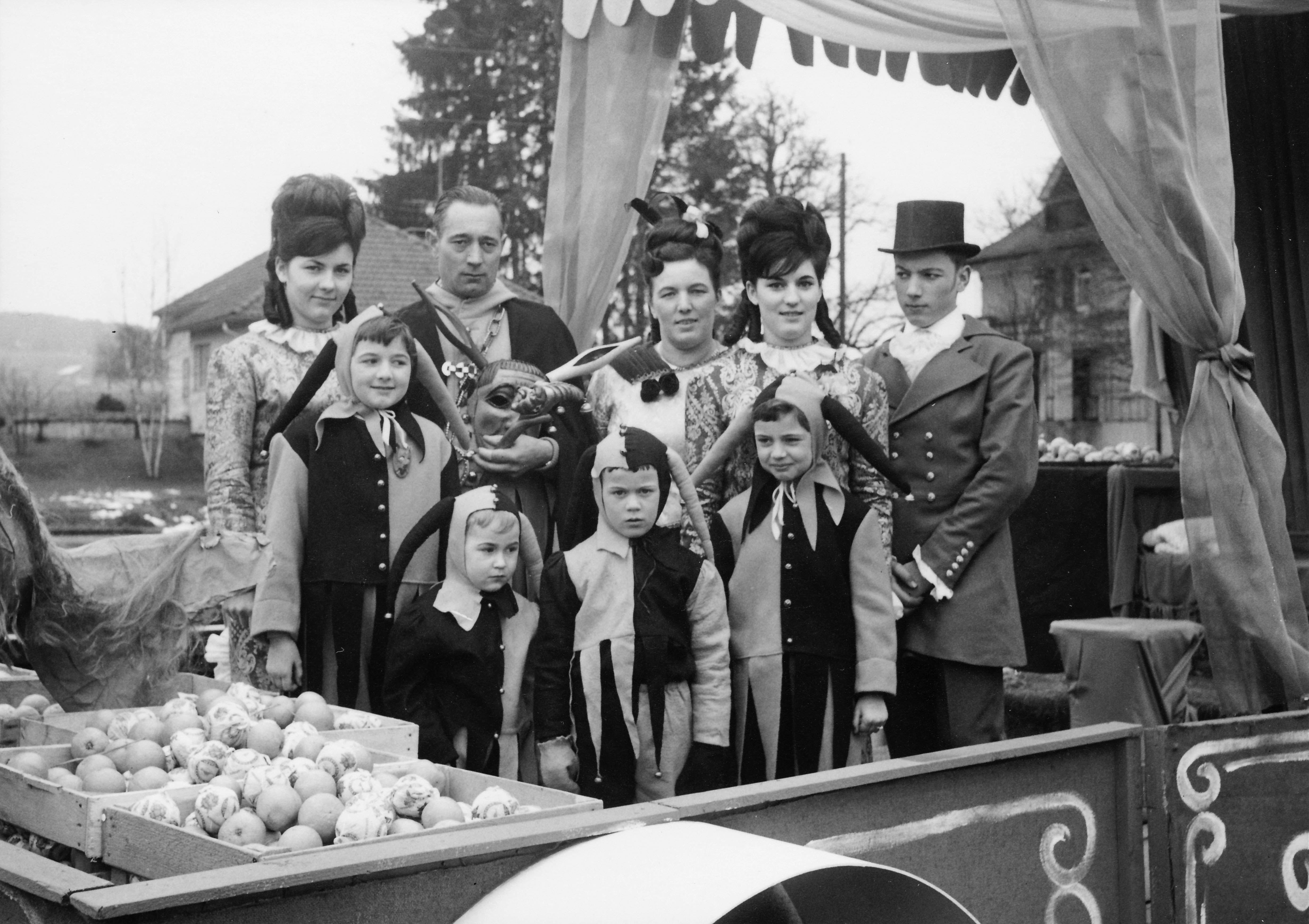 Im Stadtarchiv Sursee finden sich dazu diverse Trouvaillen aus früheren Zeiten: Umzugswagen, Gruppennummern und natürlich der Heiniwagen mit der Orangen ins Publikum werfenden Heinifamilie. Der entsprechende Bilderbogen sei den Leserinnen und Lesern nicht vorenthalten.