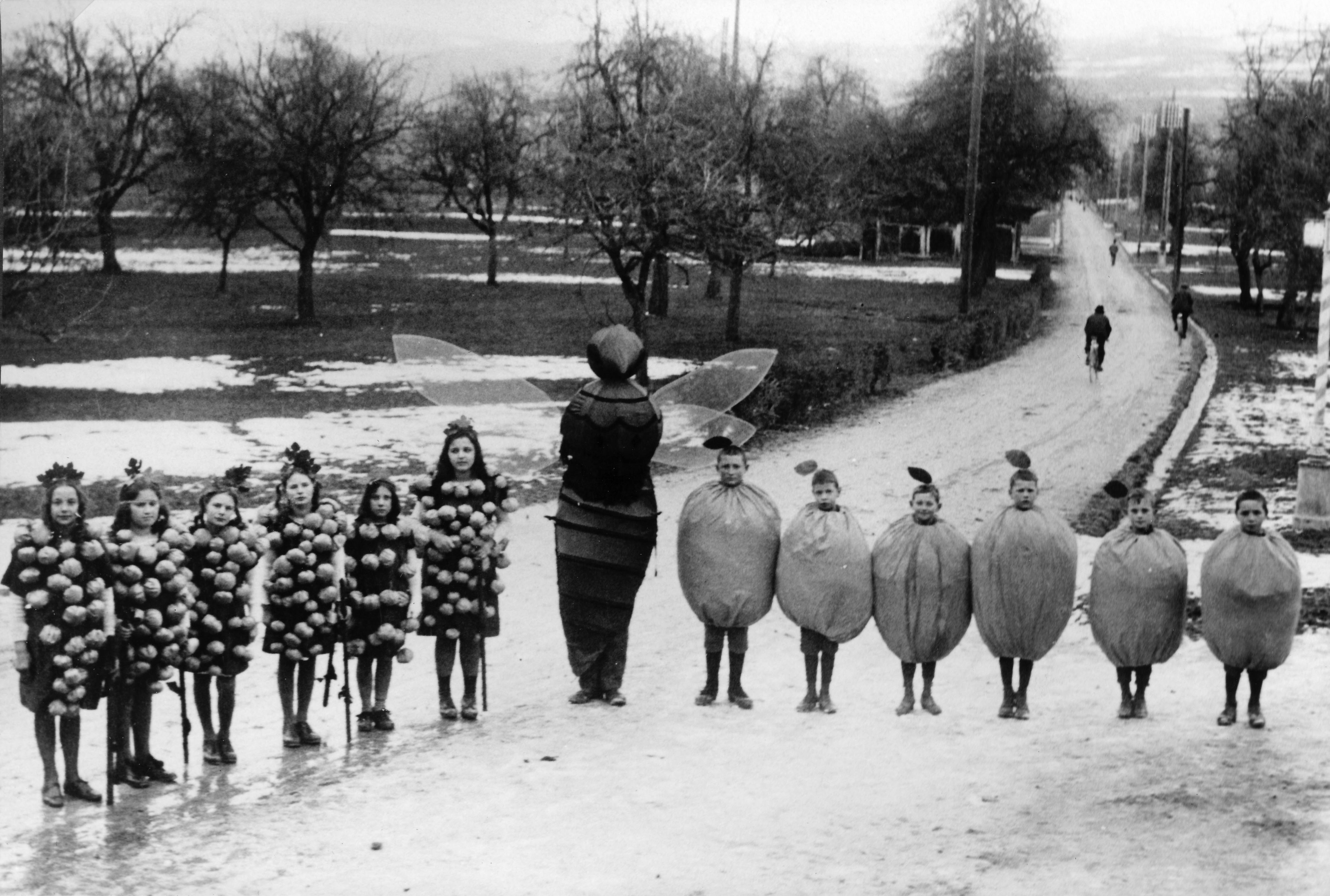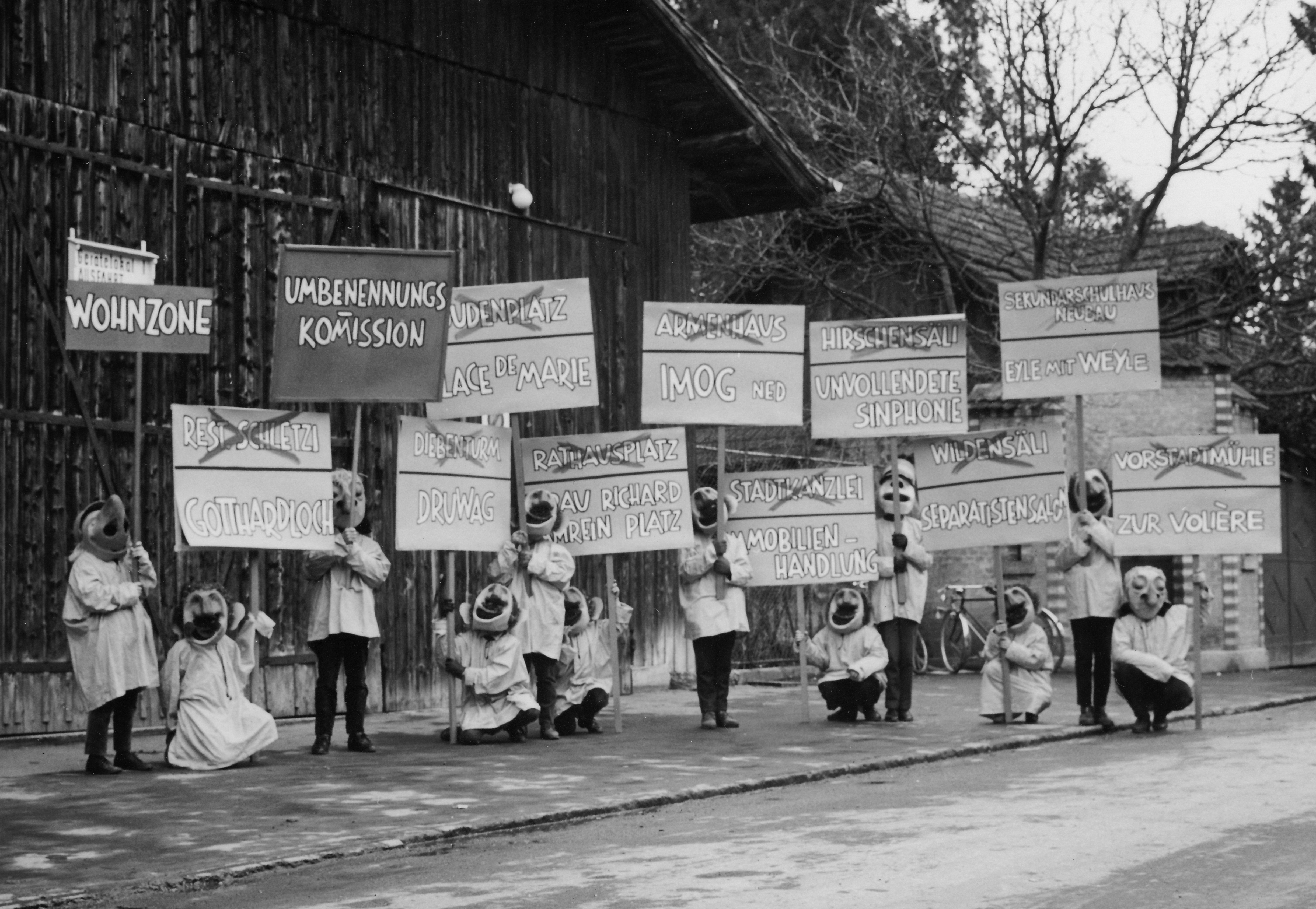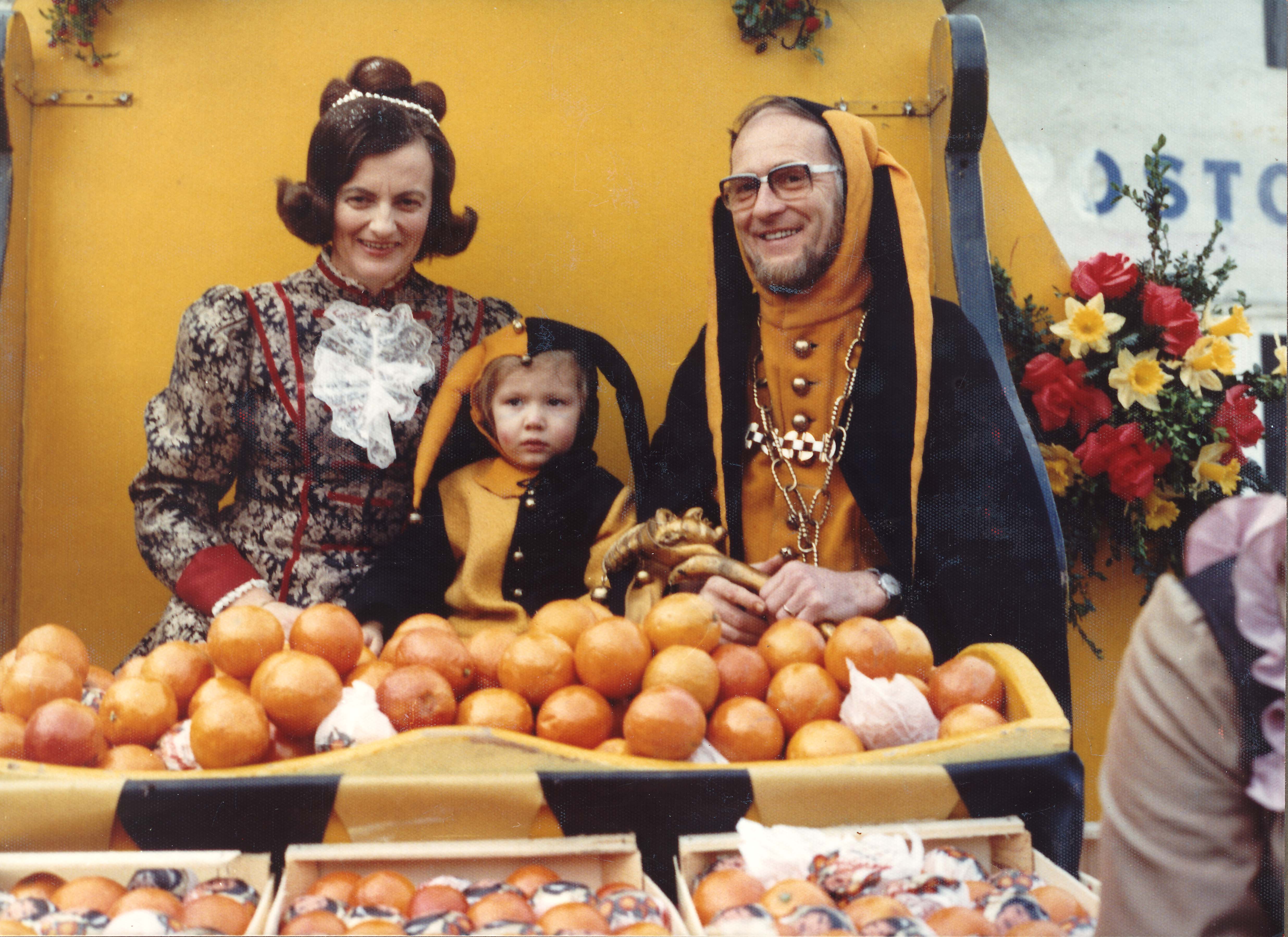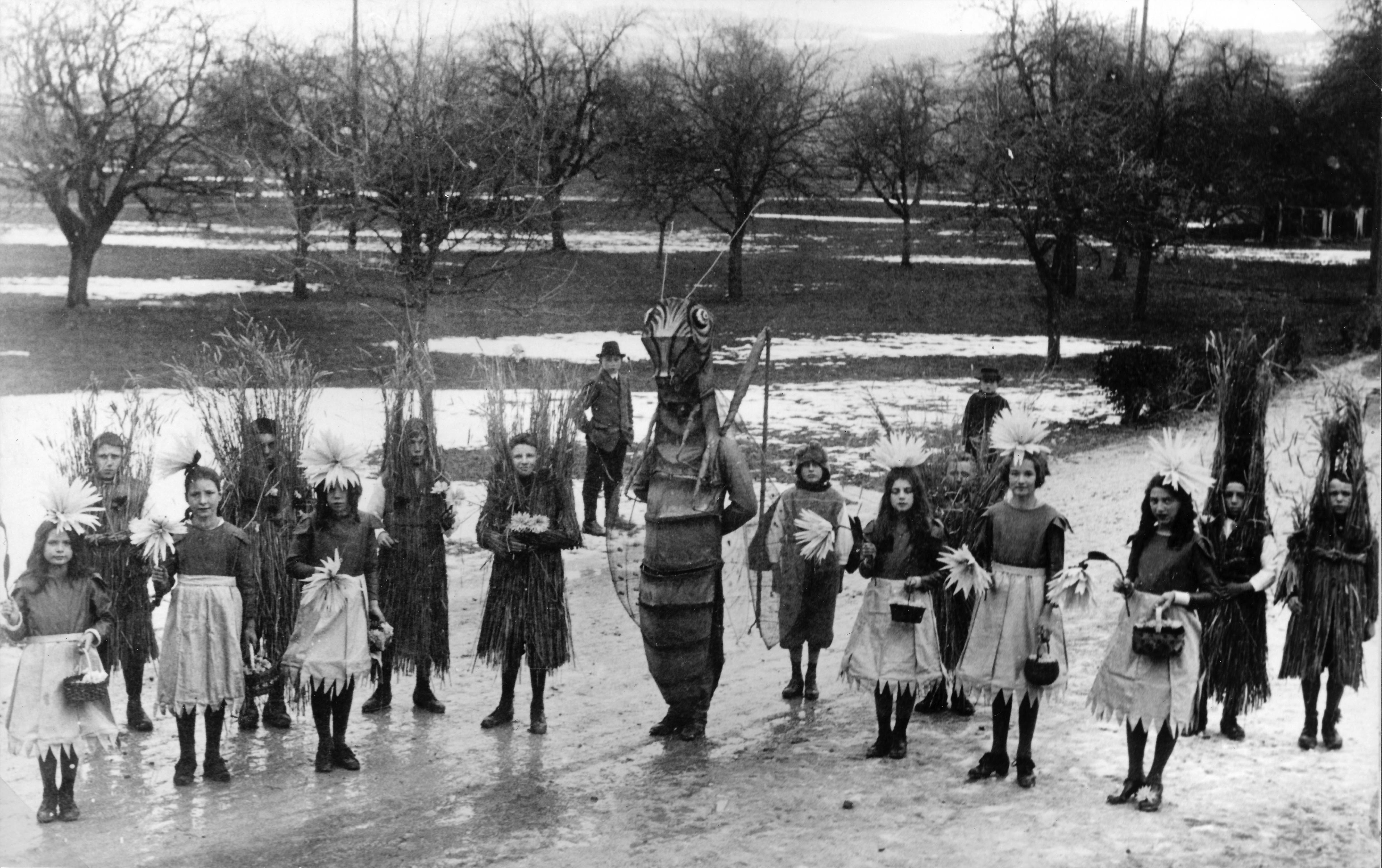 Im Stadtarchiv Sursee finden sich dazu diverse Trouvaillen aus früheren Zeiten: Umzugswagen, Gruppennummern und natürlich der Heiniwagen mit der Orangen ins Publikum werfenden Heinifamilie. Der entsprechende Bilderbogen sei den Leserinnen und Lesern nicht vorenthalten.