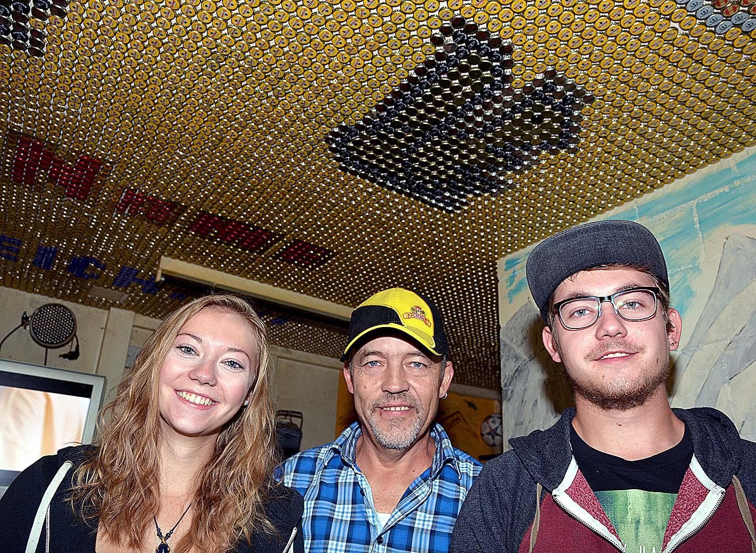 Der Trienger Maurer Josef Willimann hat ein besonderes Hobby. Er sammelt Bierdeckel (oder Kronkorken) und klebt sie an die Decke. Seine Kinder Nadine und Sandro helfen ihm gerne. Am Tag schaffen sie 1000 Bierdeckel.