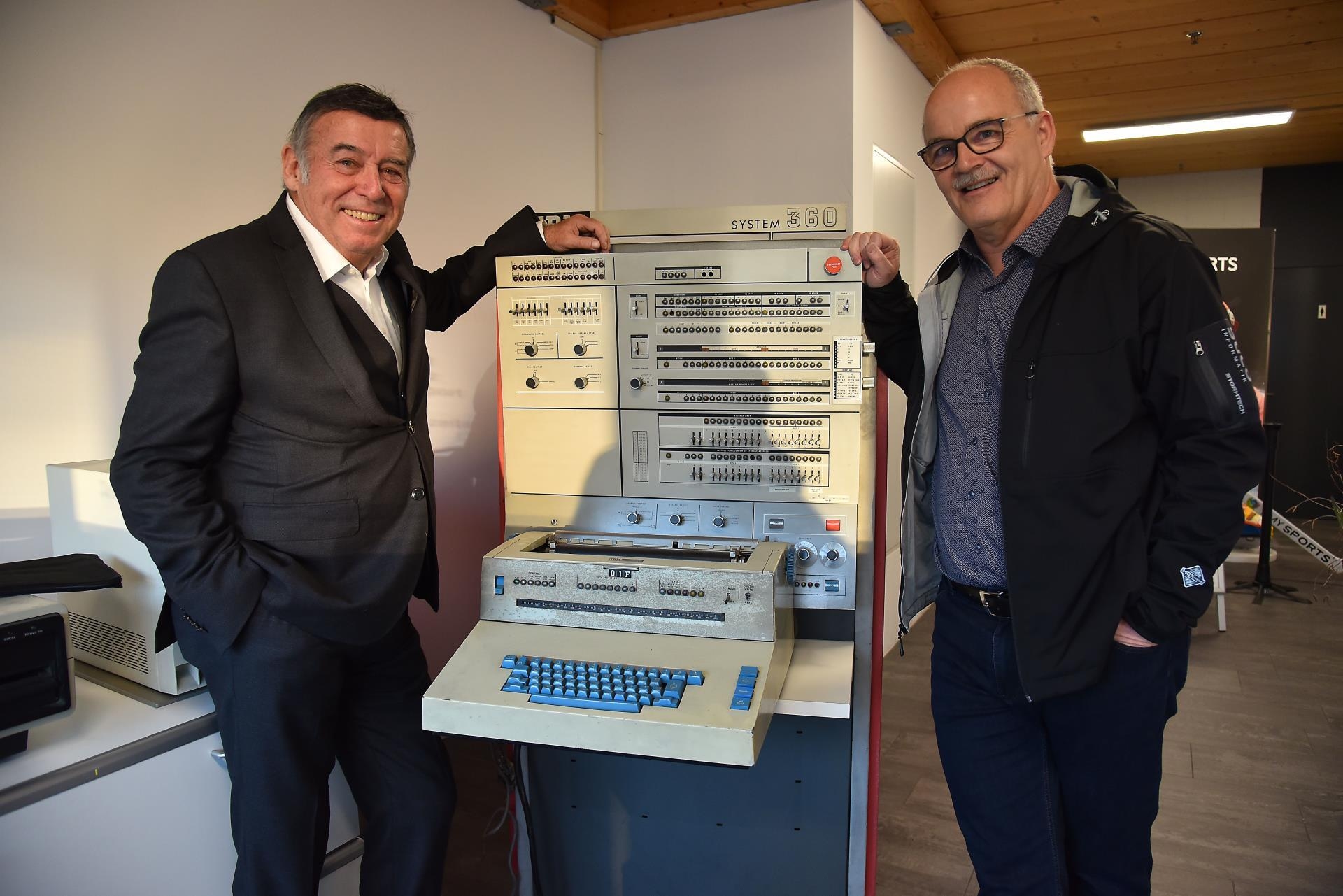 Noch immer steht der IBM 360 in Sursee – genauer im «Enterprise», das ebenfalls ein Jubiläum feiert. Vor exakt 20 Jahren wurde das Gebäude auf Initiative von Kari Hoppler an der Surentalstrasse eröffnet. Im Parterre, beim ICT competence center, ist der riesige, antike Competer einquartiert. Thomas Hunkeler öffnet die Türe und schiebt den IBM 360 fotogerecht nach vorne. Er hat 1988 die PC-Abteilung der AGRO-DATA verselbständigt und an der Bahnhofstrasse 45 mit der SUCO Informatik AG einen der ersten «IBM PC Shop» in der Schweiz eröffnet. Ein aus dieser Zeit stammende Film zeigt die Ausserbetriebnahme des IBM 360.
