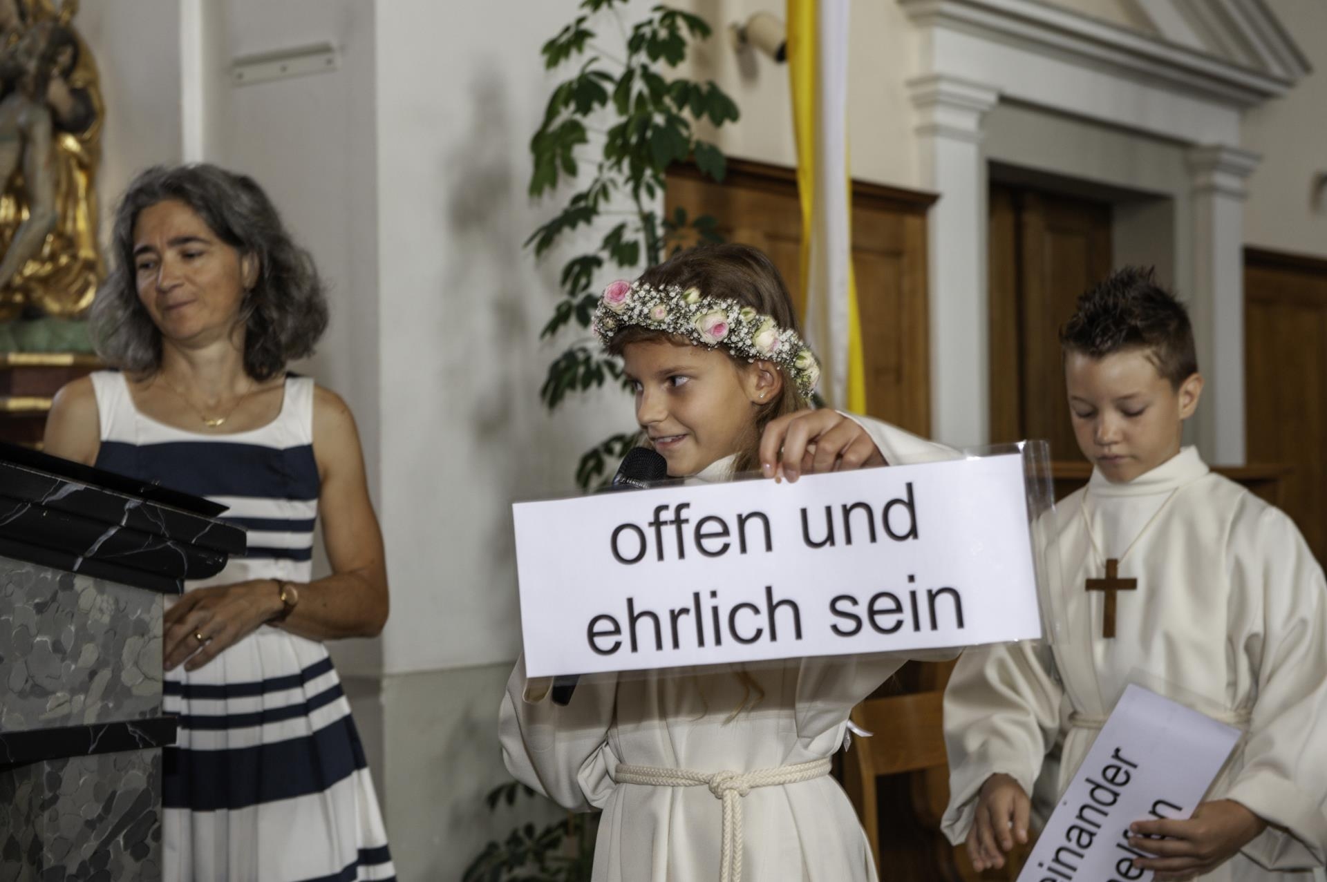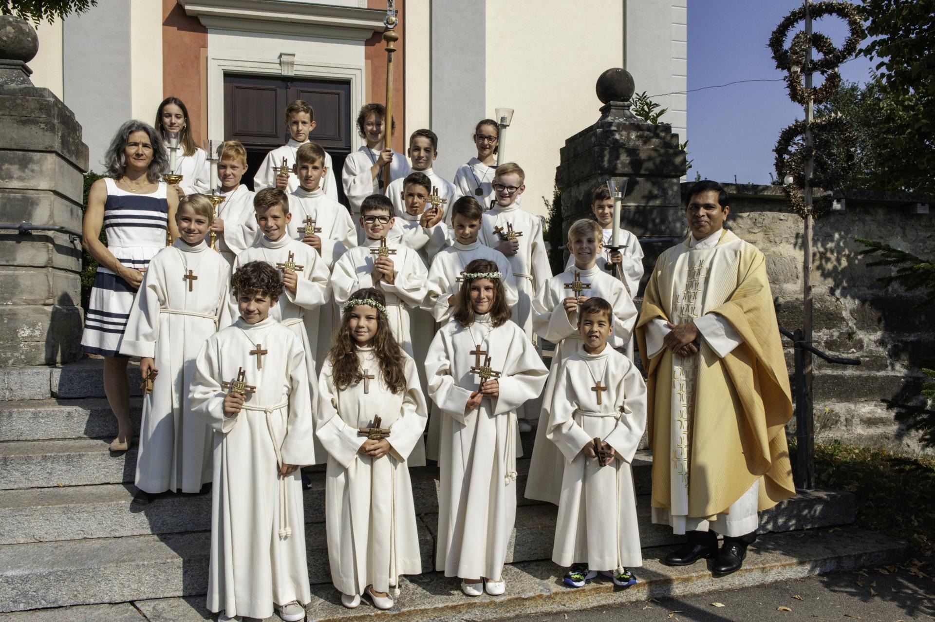 27 Erstkommunikanten wurden im Religionsunterricht durch Katechetin Karin Zürcher-Budmiger auf den Weissen Sonntag vorbereitet. Das Motto «Met Jesus of Kors» begleitete sie auf ihrem Weg und durch den Gottesdienst, der wie gewohnt mit den Einzug in Begleitung der Musikgesellschaft Knutwil begann. Dieses Jahr mussten sie lange auf den grossen Tag warten. Trotz coronabedingten Einschränkungen durften die Kinder mit ihren Familien ein schönes Fest erleben. Damit die Vorschriften eingehalten werden konnten, fanden am Wochenende vom 12. und 13. September zwei separate Gottesdienste statt.