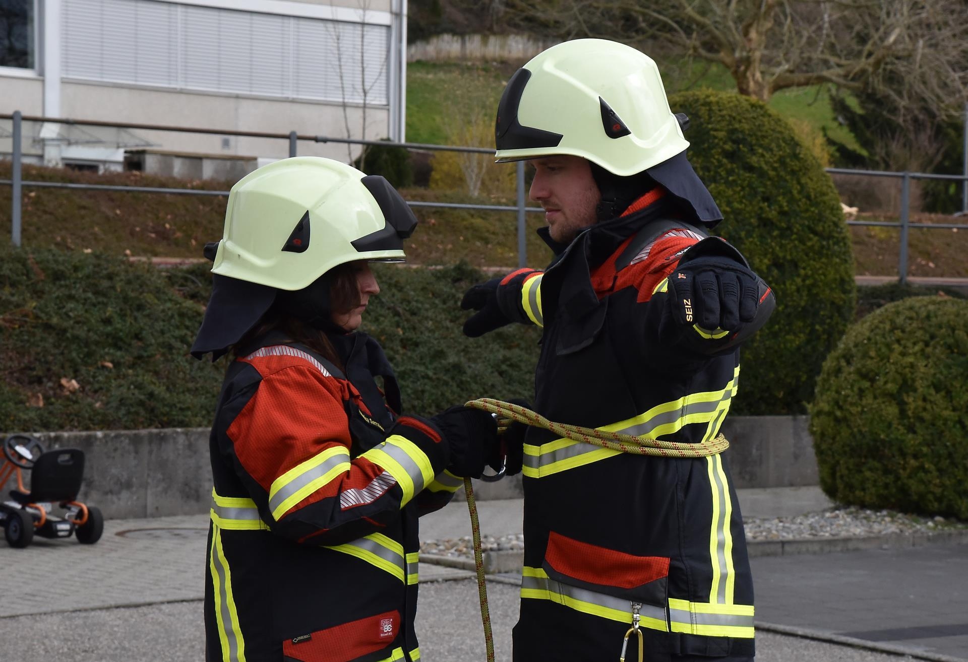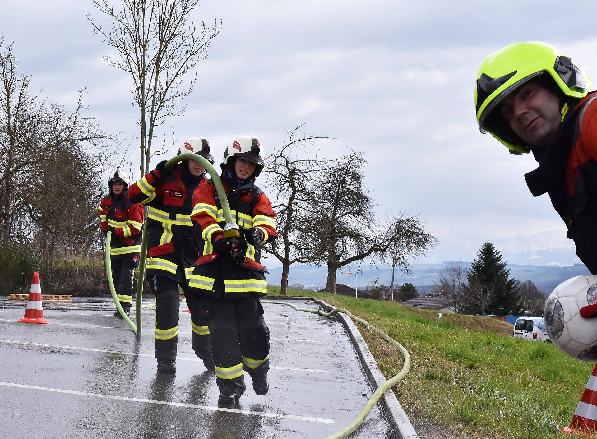 Und Natascha Jaussi aus Sempach folgte ihrem Mann Markus, der seit neun Jahren in der Feuerwehr Oberer Sempachersee mitmacht und im April den Einführungskurs für Offiziere beginnt. «Ich helfe gerne Leuten», teilte die 30-jährige Mutter mit. Jetzt seien die beiden Kinder etwas grösser, und sie habe deswegen Zeit, in der Feuerwehr mitzumachen. Ihre Zukunft sieht Natascha Jaussi in der Sanitätsabteilung. «Die Feuerwehr muss als Team funktionieren», lernte die Mitarbeiterin der Bäckerei Zwyssig. Beim Besuch vor Ort rollte sie gerade einen Feuerwehrschlauch auf. «Das ist anstrengend», kommentierte sie.