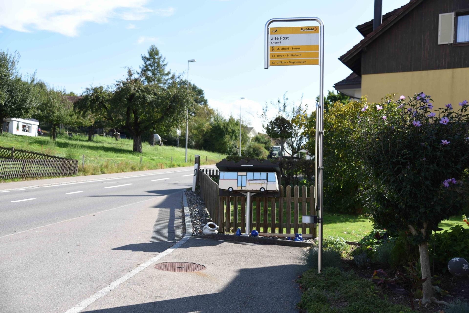 14 Haltestellen bestehen aus dem Minimum: Eine gelbe oder violette Tafel mit dem Namen der Bushaltestelle und dem Fahrplan der Buslinie. Alle zwölf besuchten Gemeinden in der Region haben solche Haltestellen. Eine Ausnahme ist die Gemeinde Büron. Auf ihrem Gemeindegebiet stehen drei Haltestellen: Eichenmoos, Dorf und Triengenacker. Alle haben einen Unterstand, eine Sitzbank und einen Abfalleimer. Dazu sagt Gemeinderätin Prisca Vogel: «Wir lassen niemand im Regen stehen und wollen Sitzgelegenheiten anbieten.»