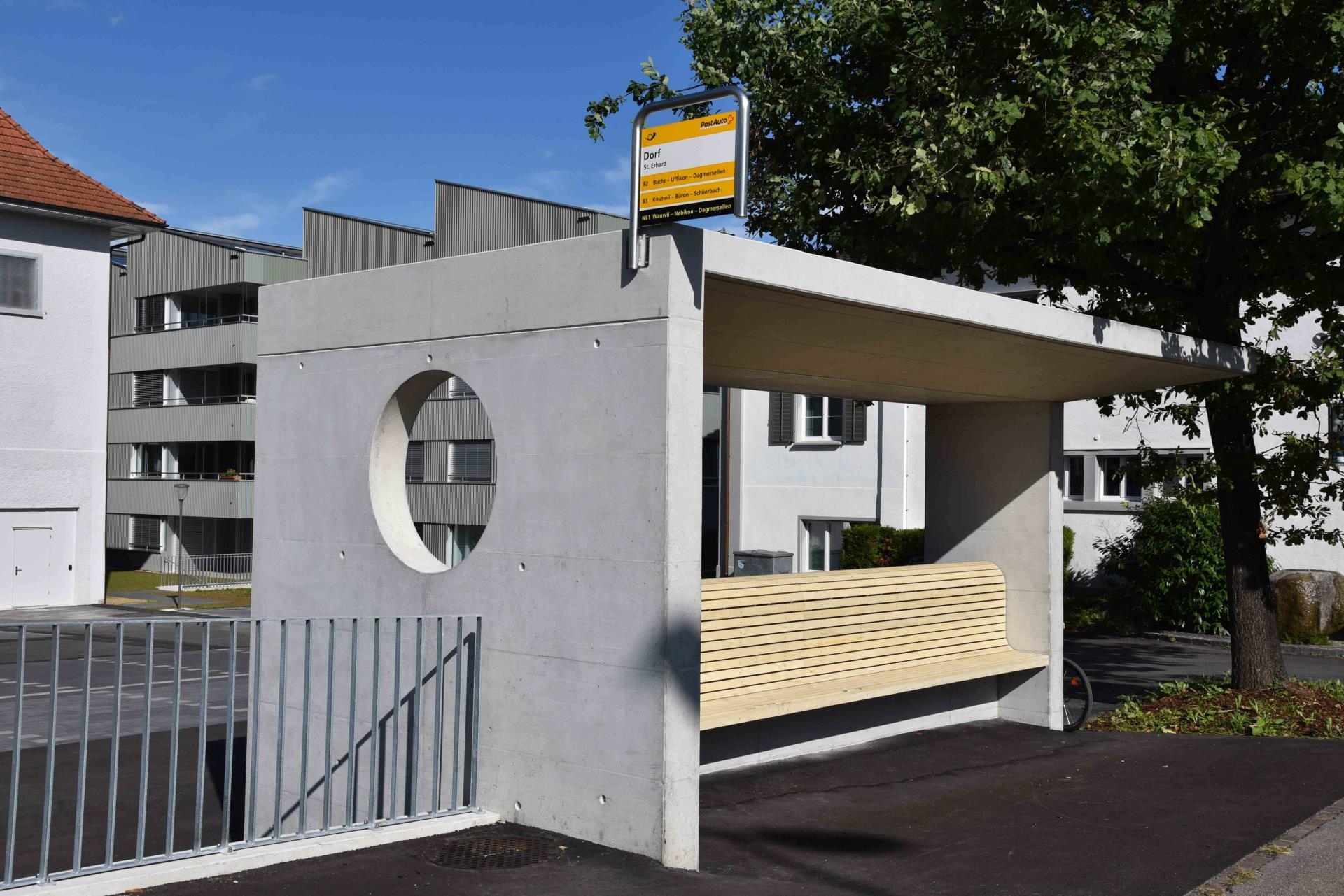 Im Dorf Büron steht seit der Einweihung des Kreisels im Juni 2017 ein neues schlichtes Bushäuschen (Foto in der Mitte), das von vielen Gästen frequentiert wird. «Der Gemeinderat beschloss, ein Bushäuschen mit einem schönen Vorplatz zu bauen», verrät Prisca Vogel. Ein Mitglied des Gemeinderats habe verschiedene Möglichkeiten sondiert und einen Vorschlag unterbreitet. Einheimische Handwerker hätten dann das Häuschen gebaut, montiert und den Strom eingezogen. Bereits die Haltestellen mit Unterstand Eichenmoos und Triengenacker konstruierte der einheimische Metallbauer.