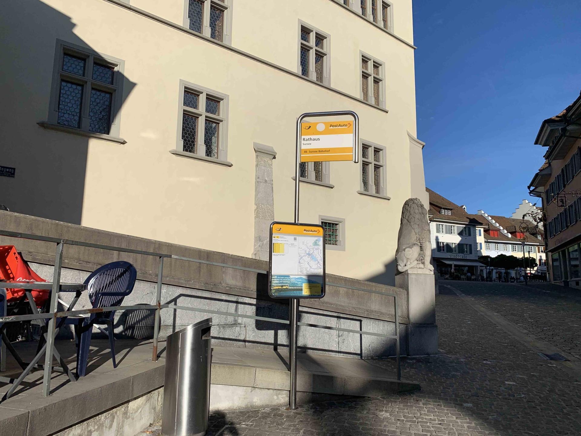 Postauto und Briefkasten passen zusammen. Dieses Paar tritt bei den Haltestellen Rathaus, Mariazell, Münchrüti in Sursee, Haldenweid und Zentrum in Schenkon, Sternen in Geuensee, Eichenmoos in Büron, Dorf in Triengen, Post in Sempach, Rüteli in Nottwil und Dorf in Mauensee auf. Billettautomaten gibt es bei «Bahnhof», «Surseepark», «Altstadt» und «Spital» in Sursee, «Zellfeld» in Schenkon, «Sternen» und «Chäppelimatt» in Geuensee, «Dorf» und «Käserei» in Triengen.