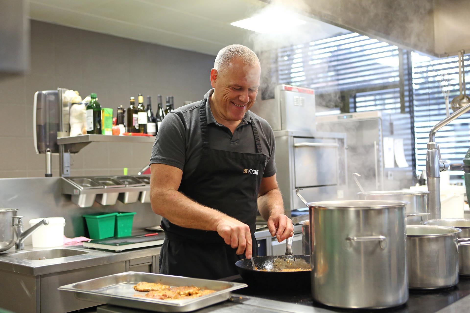«Ich wollte schon immer Koch werden. Mir gefällt das Handwerk, obwohl es brutal hart ist», erzählt Beat Amrein. Von 8 bis 14 Uhr steht er in der Küche und macht Handarbeit. Nach der kurzen Zimmerstunde setzt er seinen Arbeitstag ab 17 bis nach 22 Uhr fort – jeden Tag von Dienstag bis Samstag.