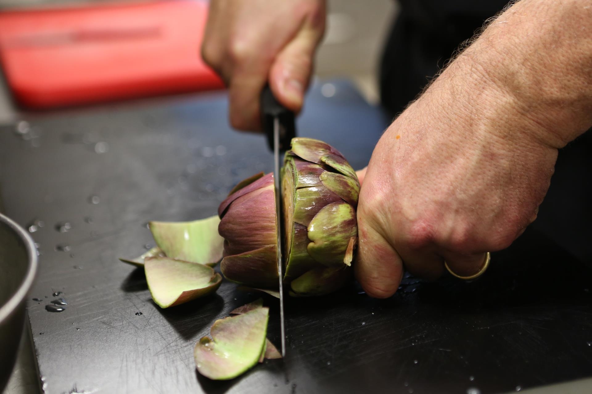 Nur bei wenigen Lebensmitteln wie Fisch, Poulet, Artischocken oder Schwarzwurzel trägt er übrigens Handschuhe. Dass seine Hände gewaschen sind, erübrigt sich speziell zu betonen, da ein Drittel der Arbeitszeit in der Küche putzen und versorgen beansprucht.