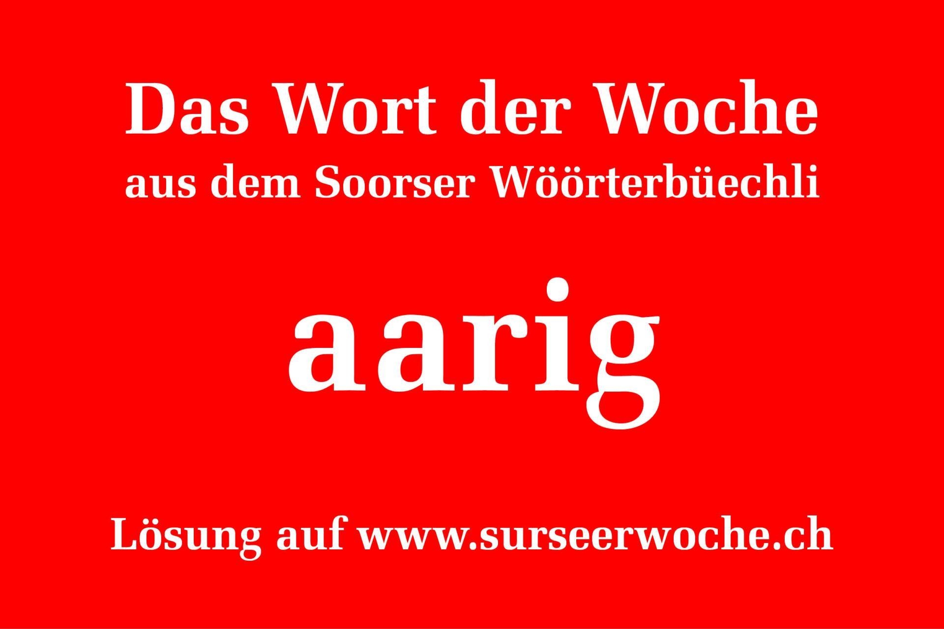 Gemäss dem «Soorser Wöörterbüechli»* bedeutet das Wort «aarig» – als Adverb oder Adjektiv eingesetzt – «sonderbar» oder «komisch». Beispiel: «En aarige Mönsch».