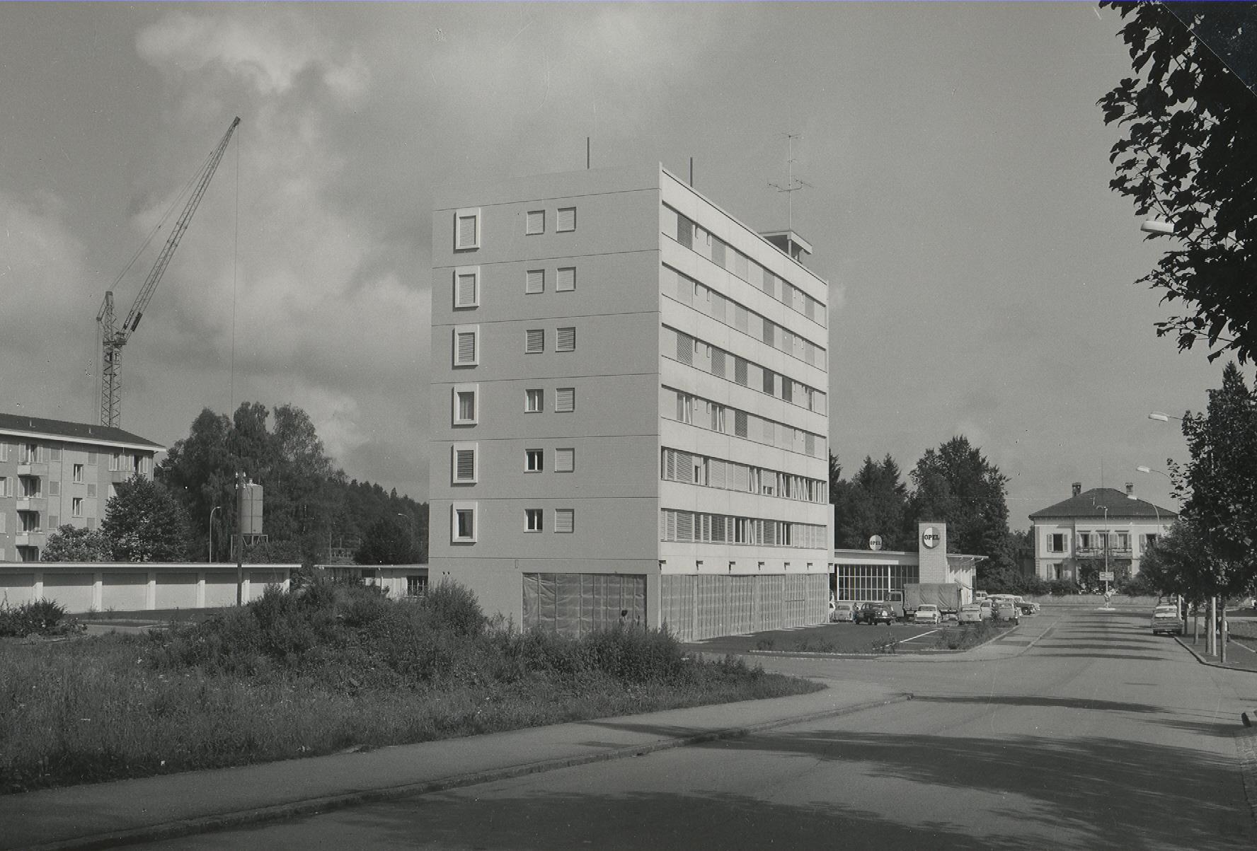 Die Christoph-Schnyder-Strasse in Sursee im Jahr 1965. Das Gebäude im Vordergrund beherbergte für Jahrzehnte unter anderem die Stadtverwaltung sowie einen bekannten Detaillisten.