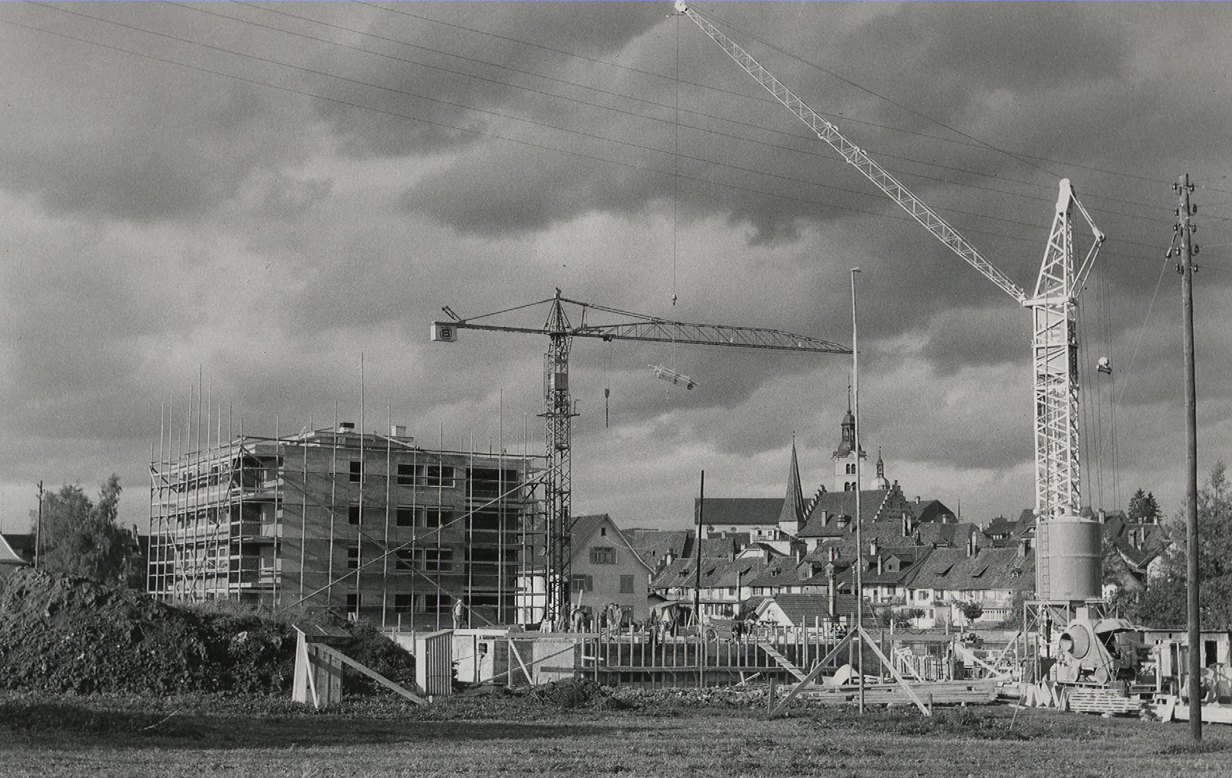 Bereits vor über 55 Jahren ragten Baukräne vor der Surseer Altstadt in die Höhe, wie diese Aufnahme von 1964 beim Bau des Wilemattquartiers belegt. 1970 zählte Sursee 7052 Einwohner, heute sind es 10`312.