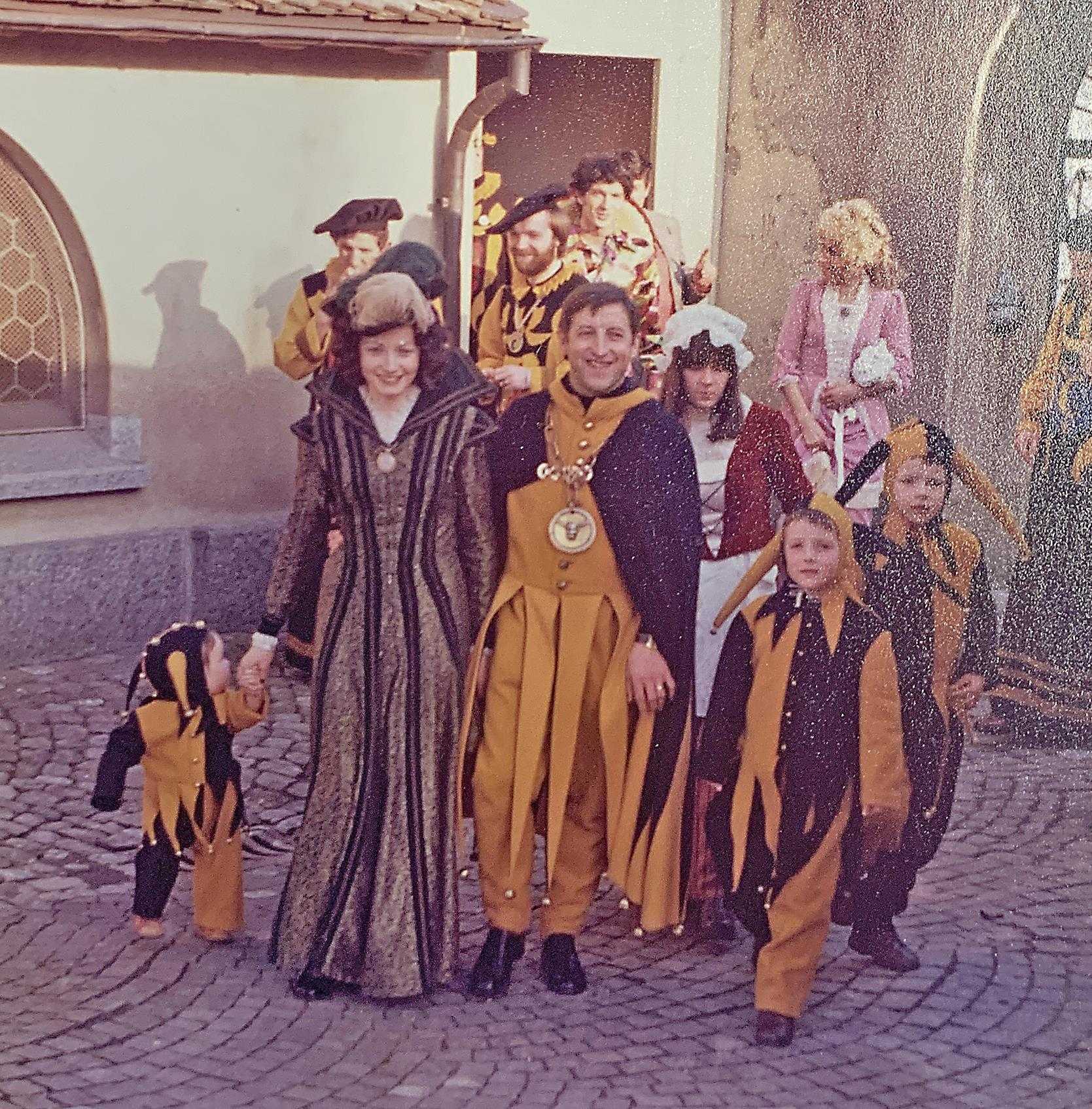 Tags darauf, am Sonntag, 29. Februar, startete der grosse Jubiläumsumzug durchs Städtli. «Dieser Umzug war ein riesiger Erfolg», sagt Toni Sidler. Zünfte aus allen Landesteilen gaben sich die Ehre. «Unsere 14 Monate alte Tochter Mirjam war auf dem Heiniwagen in einem gelb-schwarzen Laufgitter dabei», ergänzt Hermina Sidler.
