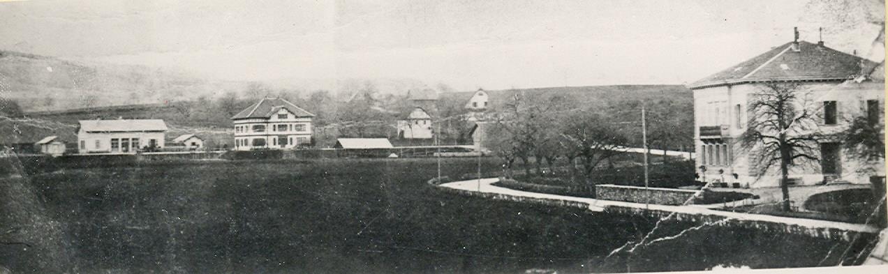 Über Jahrzehnte stand der Bahnhof praktisch allein auf weiter Flur, was diese Aufnahme eindrücklich verdeutlicht. Gesellschaft leistete ihm in unmittelbarer Nähe nur das Gasthaus Eisenbahn, das inzwischen abgebrochen wurde. Auch die Bahnhofstrasse gab es in der heutigen Form noch nicht. Der Bahnhof wurde von der Hauptstrasse nach Bern bzw. Basel her erschlossen, die sich in der rechten Bildhälfte an der Villa Schnyder vorbei schlängelt, einem der einzigen Häuser in diesem Gebiet zu jener Zeit. Heute präsentiert sich das Bahnhofgebiet ganz anders: als dicht besiedeltes Wohn-, Einkaufs- und Industriequartier, das in Kürze durch weitere Hochhäuser neue Akzente erhält.