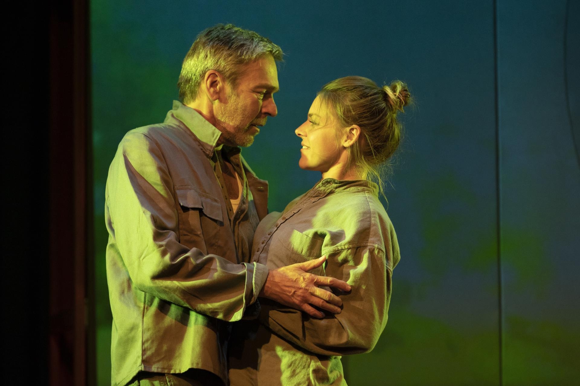 Bei den Prolos, den unteren Schichten, begegnet Winston einem alten Mann, der ihm eine Koralle verkauft. Und er trifft Julia (Isabell Kott), in die er sich Hals über Kopf verliebt. Auch Julia hegt ähnlichen Gram gegenüber «Big Brother». «Ich will leben», schreit Winston Smith im Bett zusammen mit Julia. In O’Brien (Christian Buse) sehen sie einen Verbündeten. «Wir sind Feinde der Partei», eröffnen sie ihm.