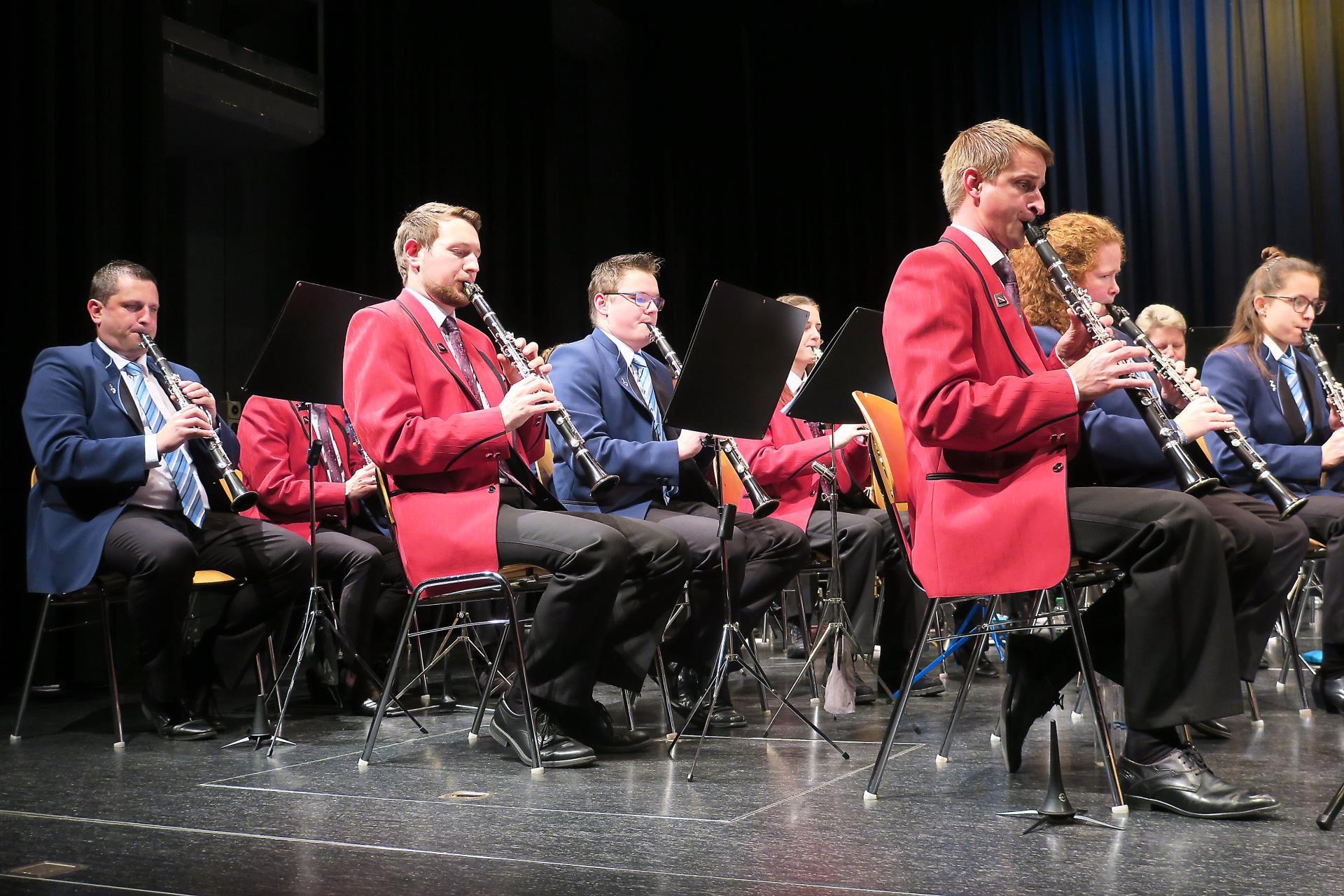 Rot und blau vereint in einer Musik. Die Feldmusik Triengen und die Musikgesellschaft Neudorf bilden das Blasorchester Triengen-Neudorf. (Foto Lukas Bucher)