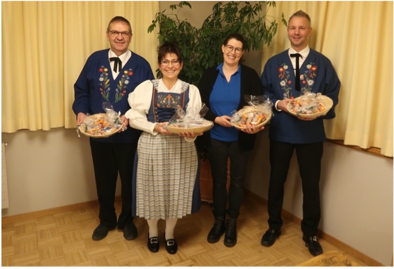 Für ihr besonderes Engagement durften Regina Wyss (Vizepräsidentin), Hanspeter Muff (Ressort Medien) und Alexandra Stadelmann (Ressort Event) die Ehrenmitgliedschaft entgegennehmen. Auch Christian Meier, der zehn Jahre lang die Leitung der Tanzgruppe innehatte, wurde der Ehrenmitgliedschaftstitel verliehen. Mit grossem Stolz durfte verkündet werden, dass Irene Barmettler-Fischer dieses Jahr den Lehrgang zur Trachtenschneiderin mit Diplom erfolgreich absolviert hat. Trotz zwei Austritten wächst die Trachtengruppe Triengen, verzeichnet sieben neue Mitglieder und heisst Othmar Schmid, Franz Häfliger, Eliane Steinmann, Monika Odermatt, Melanie Matter, Martin Minder und Corina Zemp herzlich willkommen. Im Jubiläumsjahr erhielt der Verein neue T-Shirts in einem frischen Blau, ebenfalls erschien auch der Webauftritt (www.trachtengruppetriengen.ch) in einem neuen Kleid. Die Trachtengruppe Triengen präsentiert sich nun traditionell modern. Zum Vormerken: Das nächste Konzert mit dem Motto «s’Läbe läbe» findet am Auffahrtswochenende, vom 14. bis 16. Mai 2026 statt. Im Anschluss an die Generalversammlung fand der Abend bei gemütlichem Beisammensein seinen Ausklang.