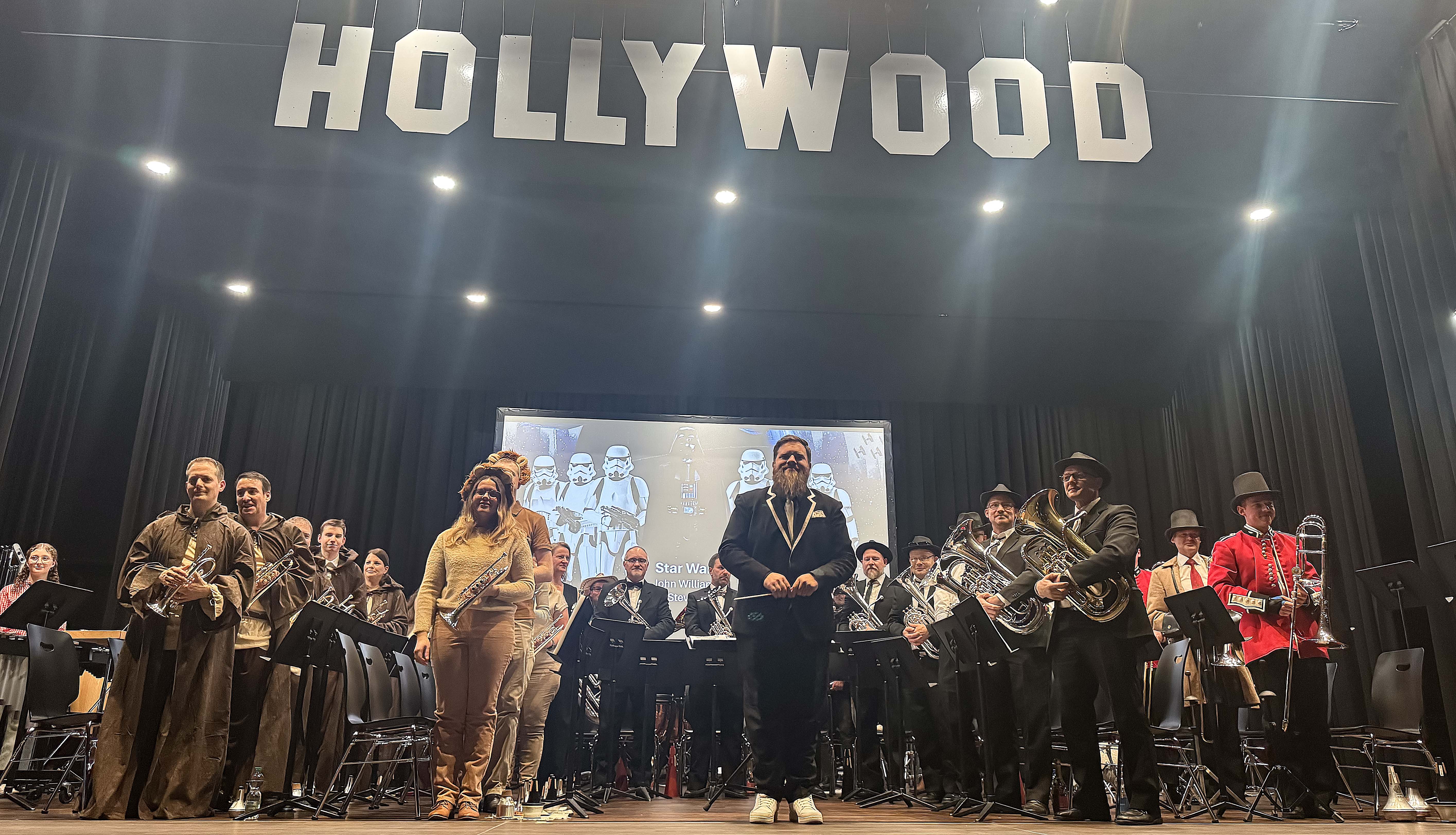 Nach der Pause wartete auf das Publikum ein weiterer Höhepunkt des Abends, diesmal nicht nur musikalisch, sondern auch visuell. Die Musikgesellschaft überraschte mit einem Kostümwechsel, der das Publikum sichtlich begeisterte und auf den zweiten Teil des Konzertes vorbereitete. Plötzlich standen Löwen aus «The Lion King», «James Bond», Jedi-Kämpfer aus «Star Wars», Showmen aus «The Greatest Showman» sowie Cowboys und Cowgirls aus der Welt von Ennio Morricone auf der Bühne. Damit war jeder Film vertreten und das Motto wurde noch stärker erlebbar gemacht.