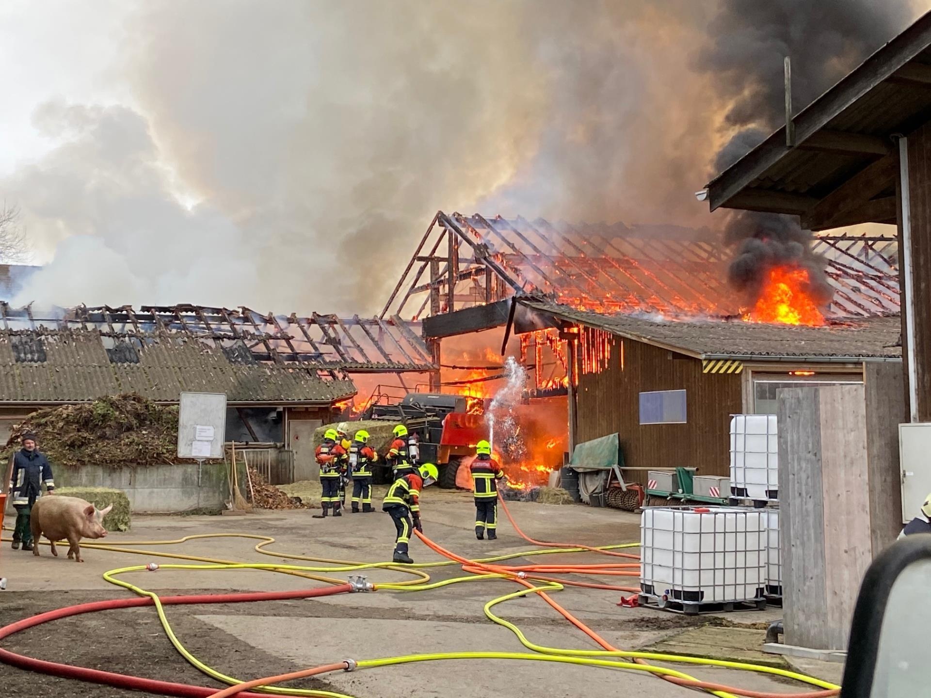 Am Dienstag, 5. Januar, kurz nach 13.30 Uhr, wurde der Brand der Polizei gemeldet. Beim Eintreffen der ersten Einsatzkräfte stand ein Teil der Scheune bereits in Vollbrand. Zwei Personen wurden beim Vorfall verletzt. Sie wurden vom Rettungsdienst 144 ins Spital gefahren. In der Scheune befanden sich rund vierzig Schweine, welche grösstenteils gerettet werden konnten. Vier Schweine verendeten oder erlitten Verletzungen, so dass sie durch einen Tierarzt vor Ort eingeschläfert werden mussten. Ein Übergriff des Feuers auf die umliegenden Gebäude, unter anderem auf eine Biogasanlage, konnten durch die Einsatzkräfte der Feuerwehren verhindert werden. Im Einsatz standen rund 80 Einsatzkräfte der Feuerwehren Knutwil-Mauensee und der Region Sursee. Der entstandene Sachschaden kann derzeit nicht beziffert werden. Die Brandursache ist Gegenstand der laufenden Ermittlungen, welcher durch die Brandermittler der Luzerner Polizei geführt werden. Die Bernstrasse zwischen Sursee und Mauensee war während ca. drei Stunden gesperrt. Der Verkehr wurde örtlich umgeleitet.