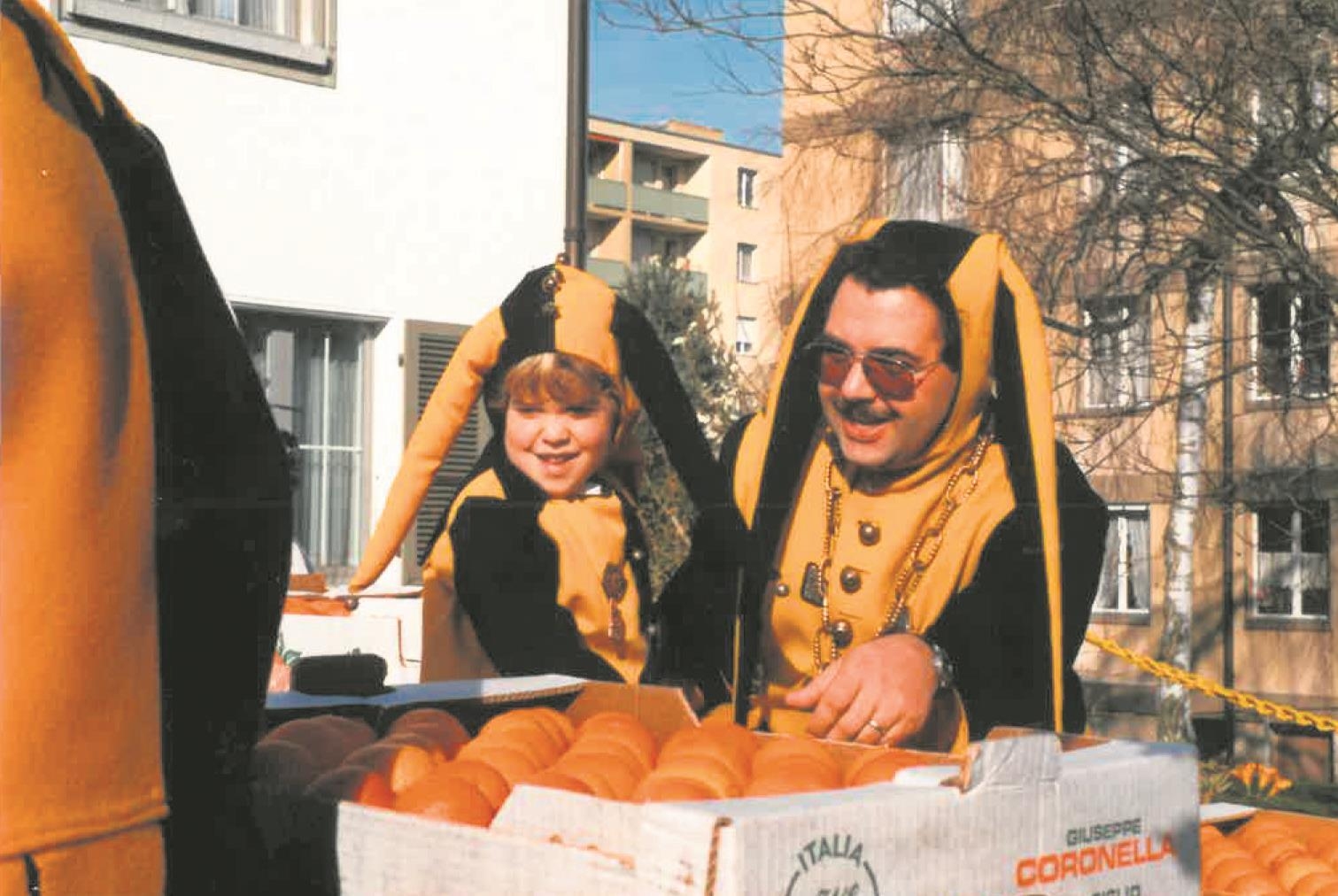 Am Umzug vom 16. Februar 1988 herrschte strahlendes und heisses Wetter. Bruno Künzle verrät: «Beim Polizeiposten verfolgte ich den Start des Umzugs im Narr, Unterhosen, Socken und Schuhen.» Er holte sich beinahe einen Sonnenbrand. Die Orangenschlacht nach dem Umzug im Städtli zählt er zu einem der Höhepunkte der Fasnacht 1988. Beim Böögverbrennen passierte dann noch ein kleines Malheur: Das Kleid von Heinimamme Heidy Künzle (sie trat als Csadas-Fürstin auf) fing ein Brandloch ein.