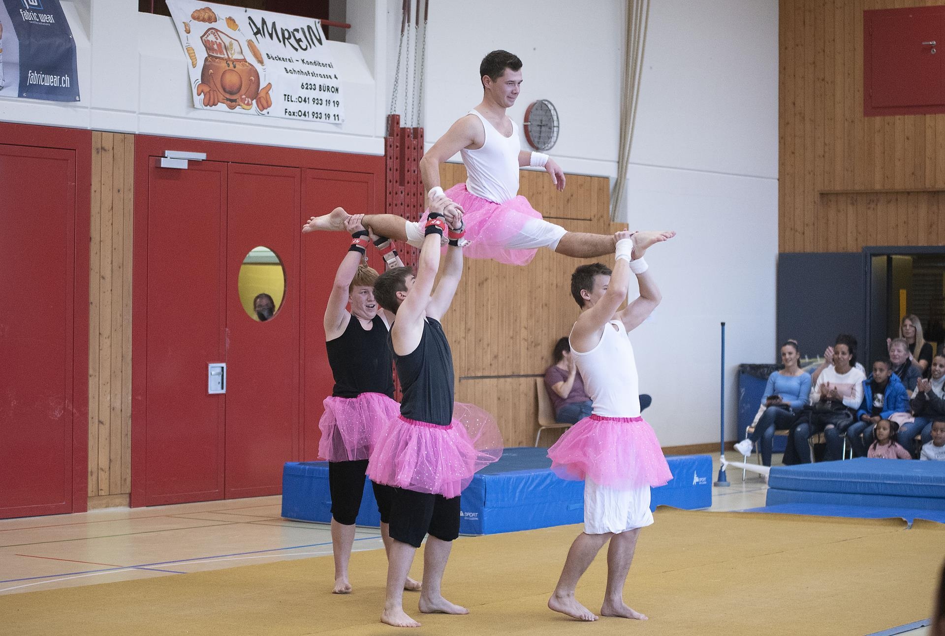 Die Trampolingruppe verabschiedete sich akrobatisch. Bild: Foto Thomas Stillhart