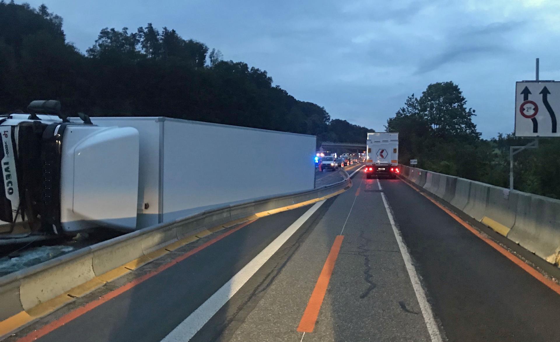 Am Dienstagmorgen ereignete sich auf der Autobahn A2 in Knutwil ein Selbstunfall eines Lastwagens. Dieser kippte und kam auf der Seite liegend zum Stillstand. Der Chauffeur verletzte sich dabei und wurde durch den Rettungsdienst ins Spital gefahren. Die Autobahn Richtung Norden musste vorübergehend gesperrt werden. In Fahrrichtung Süden wurde der Verkehr einstreifig geführt. Zwischenzeitlich ist die Autobahn wieder in beide Richtungen einstreifig befahrbar.