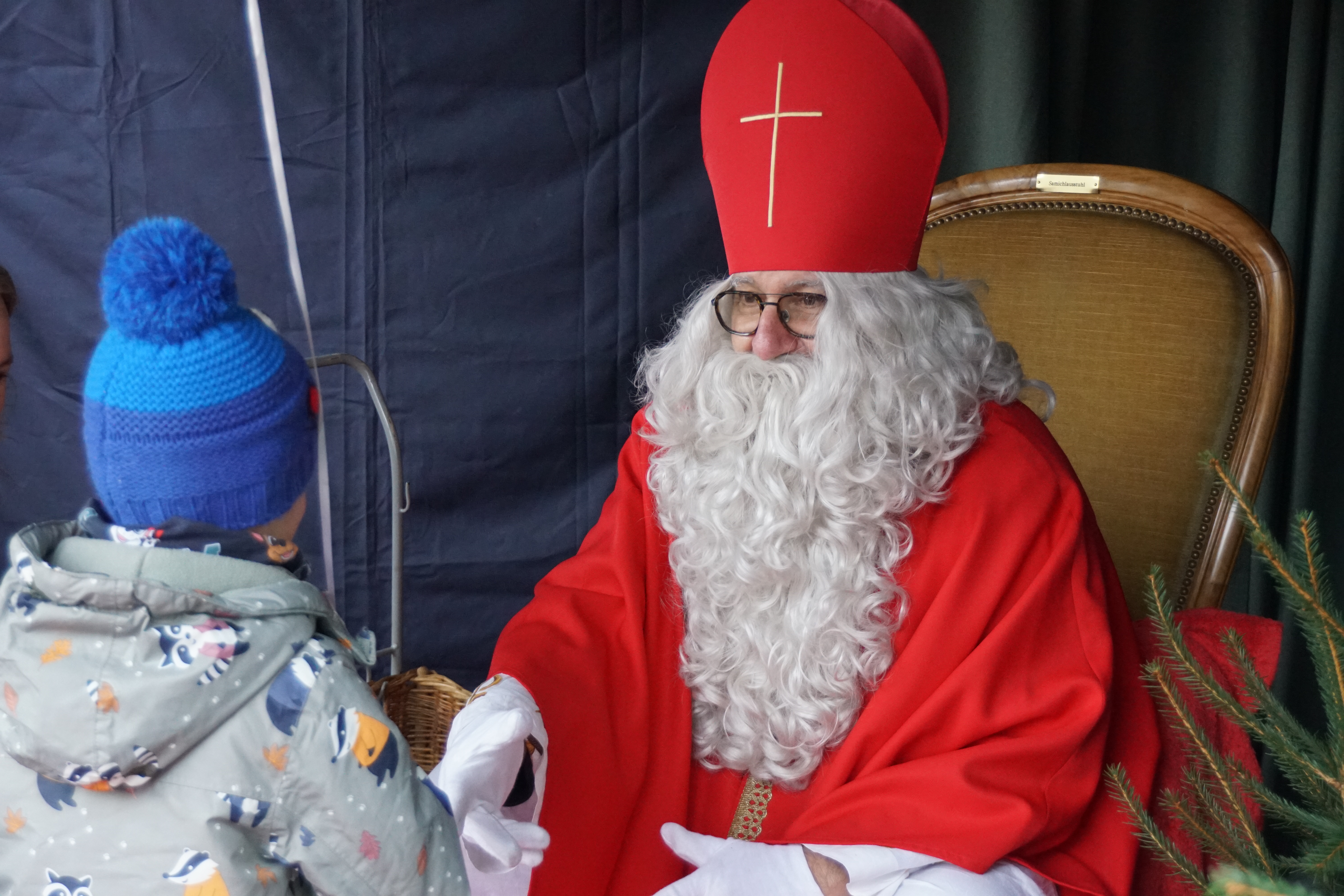 Natürlich machte auch der Samichlaus seine Aufwartung. Auf dem Martignyplatz empfing er Kinder in einem Zelt und liess sie Sprüche aufsagen. Die kleine Elina trug ein besonders schönes Gedicht vor: