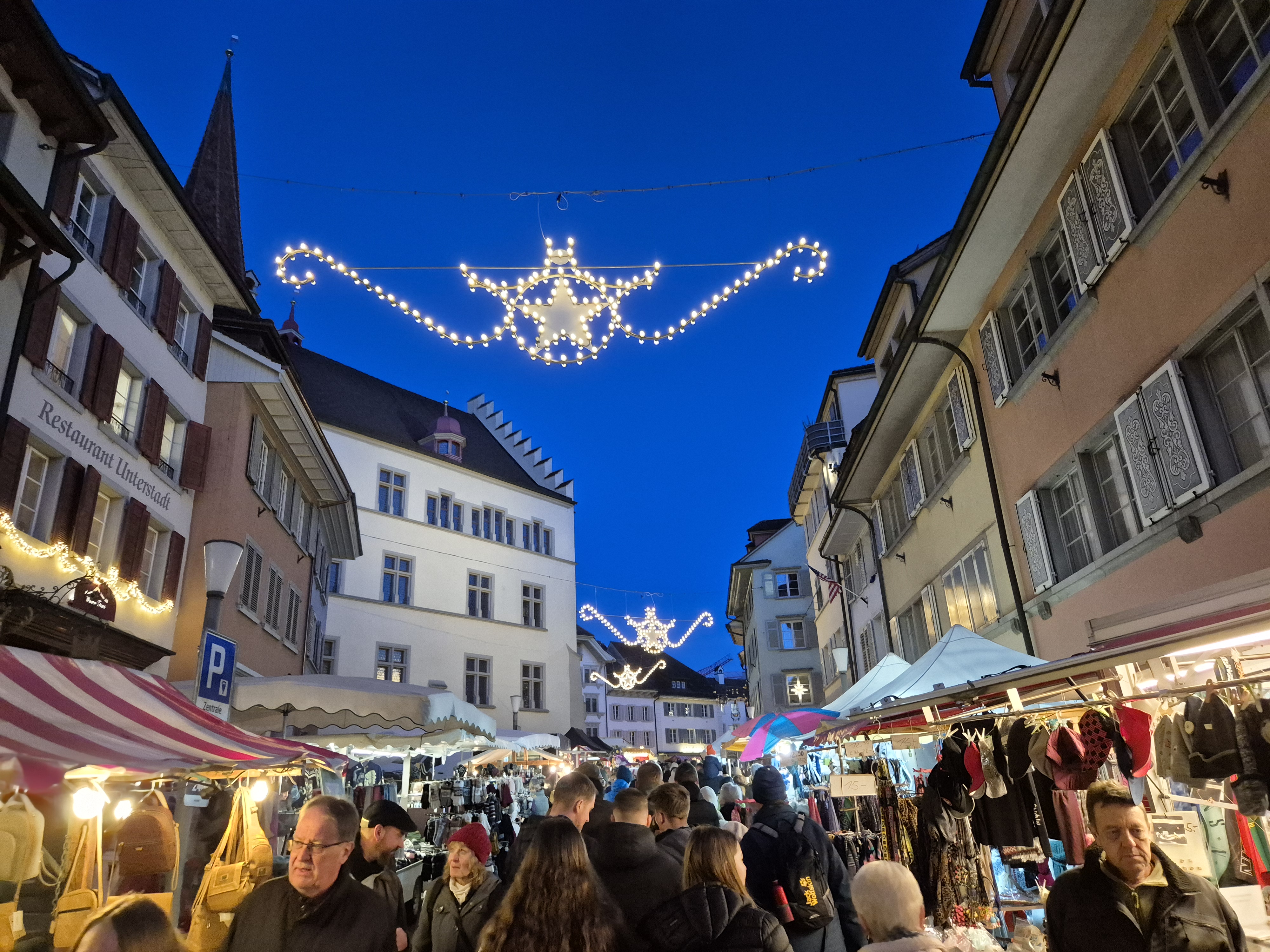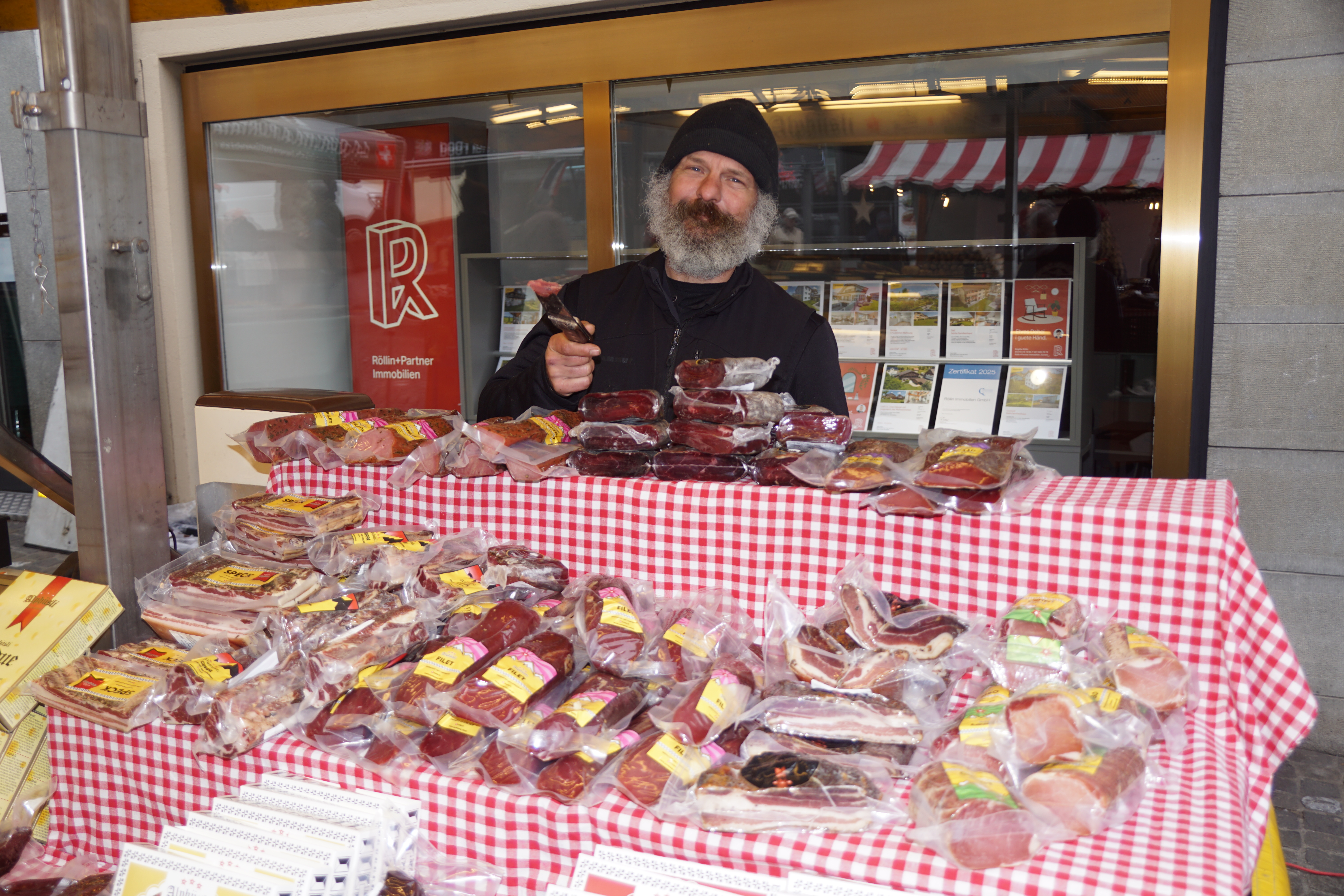 Ja, aber was ist es denn nun genau? Ein Chlaus- oder ein Warenmarkt? Im Fall von Sursee trifft beides zu. Denn vom Münster-, über den Juden- bis zum Martignyplatz konnten sich gut gelaunte Besucherinnen und Besucher durch die übervollen Gassen und Plätze schlängeln, um sich an der üppig bestückten Warenauslage der Marktstände zu erfreuen. Und tatsächlich: In der weihnächtlich dekorierten, historischen Altstadt von Sursee gab es fast nichts, was das Herz nicht begehrte. Von Kerzen, Schmuck, Schals, Handschuhen, Mützen und Taschen über alle Arten und Sorten von Tee, Honig und Likören bis hin zu Stofftierchen, Fingerpuppen und Bettsocken liess das Sortiment nichts zu wünschen übrig. Wem das Angebot gar zu klassisch daherkam, der konnte sich mit allerhand mediterranen Köstlichkeiten, wie etwa Oliven, italienischem Käse oder Paste die Mandorla eindecken.