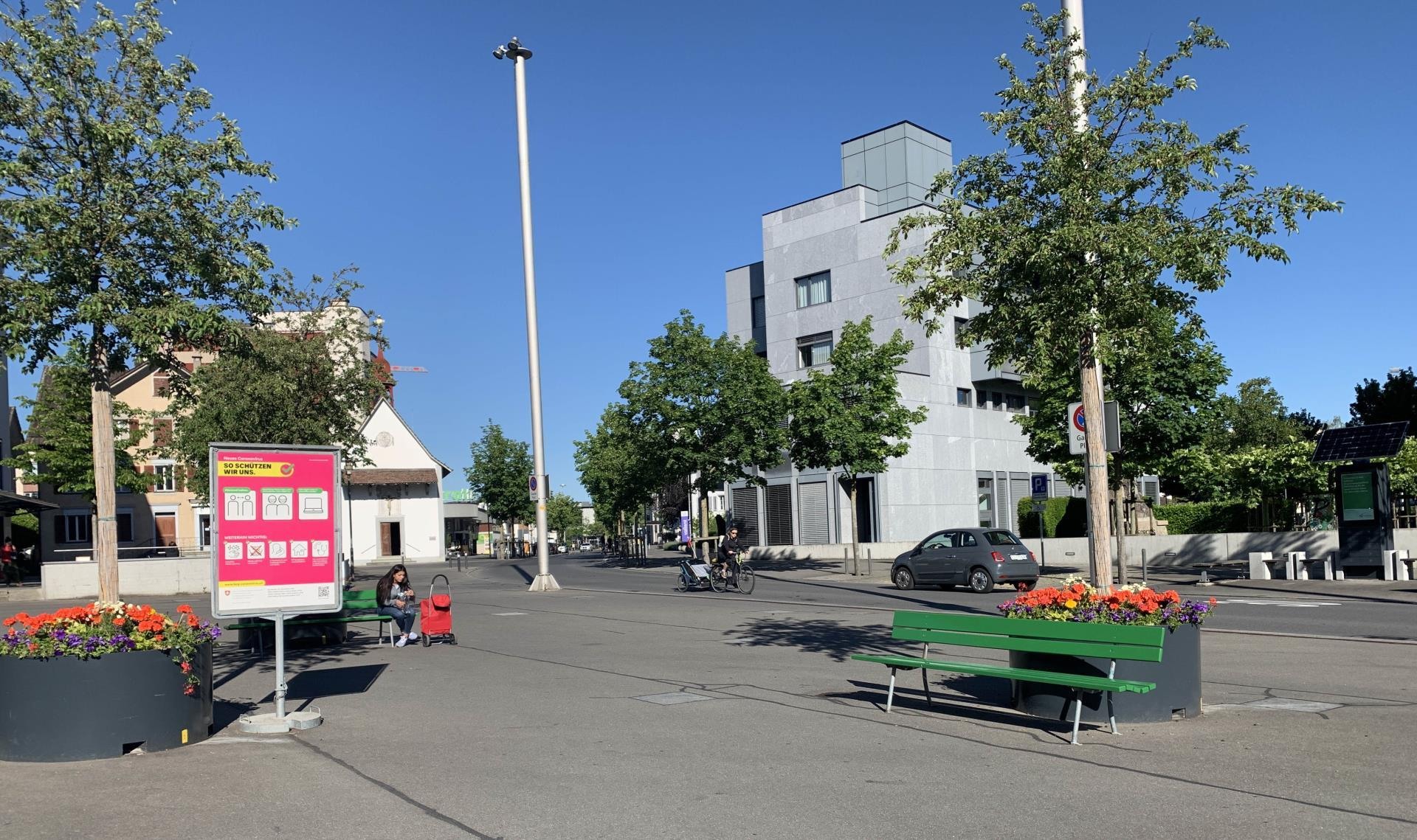 Auf dem Martigny-Platz stehen wieder Bänke. Der Werkdienst der Stadt Sursee stellte sie auf – mit dem üblichen Abstand.