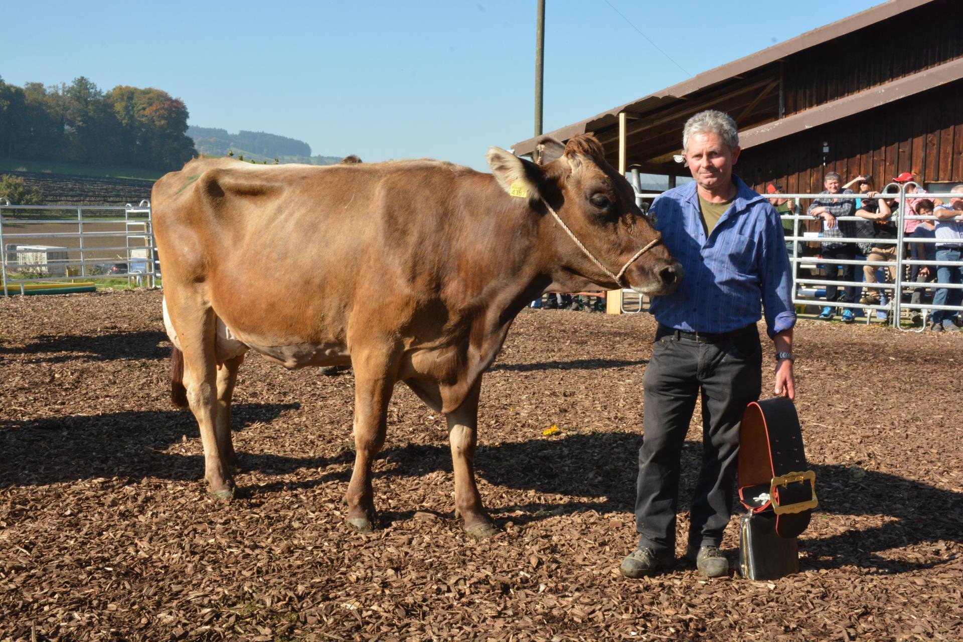 Sie heisst Kalula, kommt aus Wilihof und wurde am Samstag an der Jubiläumsviehschau des Braunviehzuchtvereins Surental gekrönt. Besitzer und Vereinspräsident Josef Kaufmann freute sich über den 1. Platz, den er mit seiner Kuh ergattern konnte.