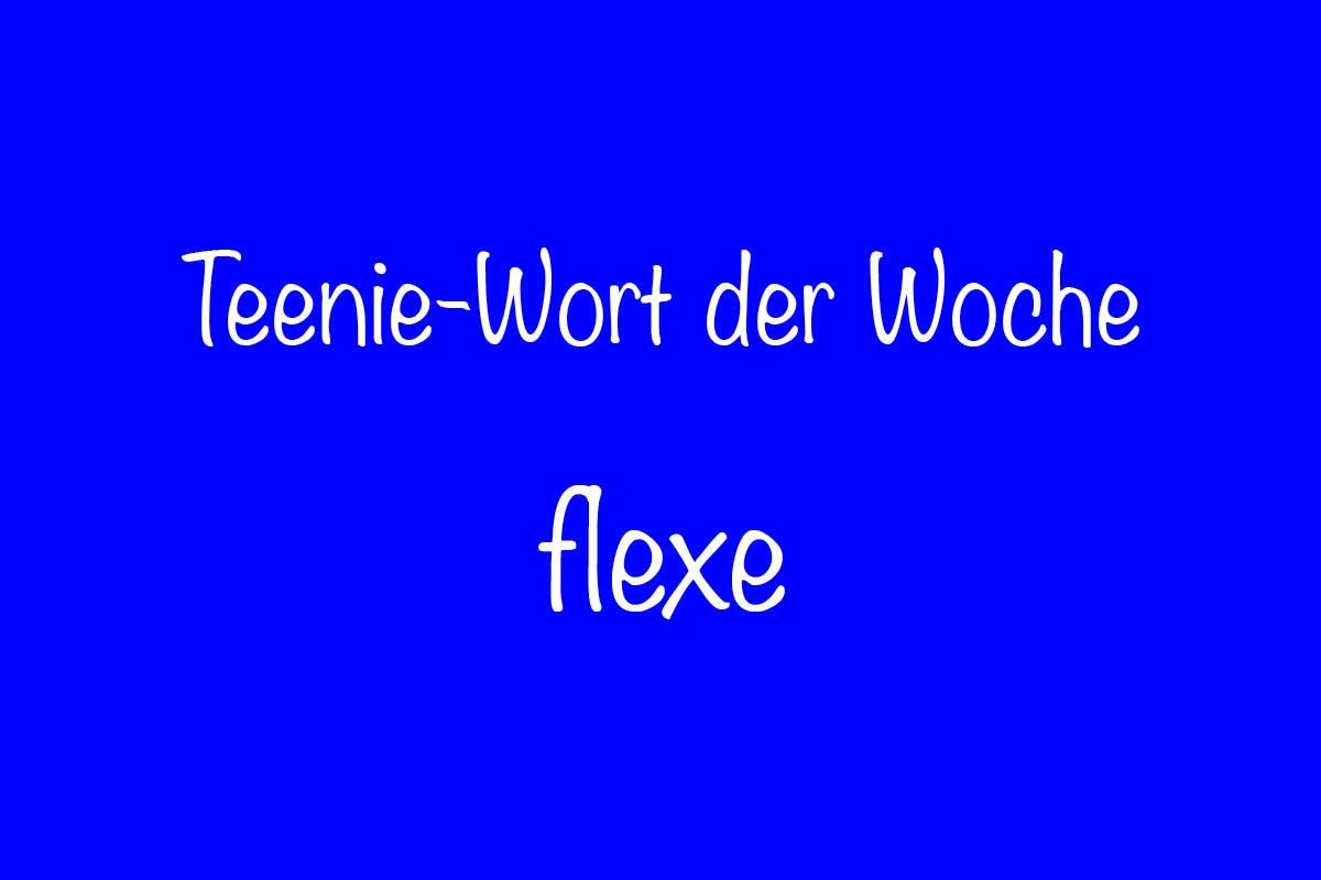 Das Teenie-Wort «flexe» heisst übersetzt soviel wie angeben. Wenn also jemand mit seinem teuren Auto absichtlich langsam an der Bushaltestelle vorbei fährt oder absichtlich lange auf die Rolex am Handgelenkt blickt, «flext» was das Zeug hält.