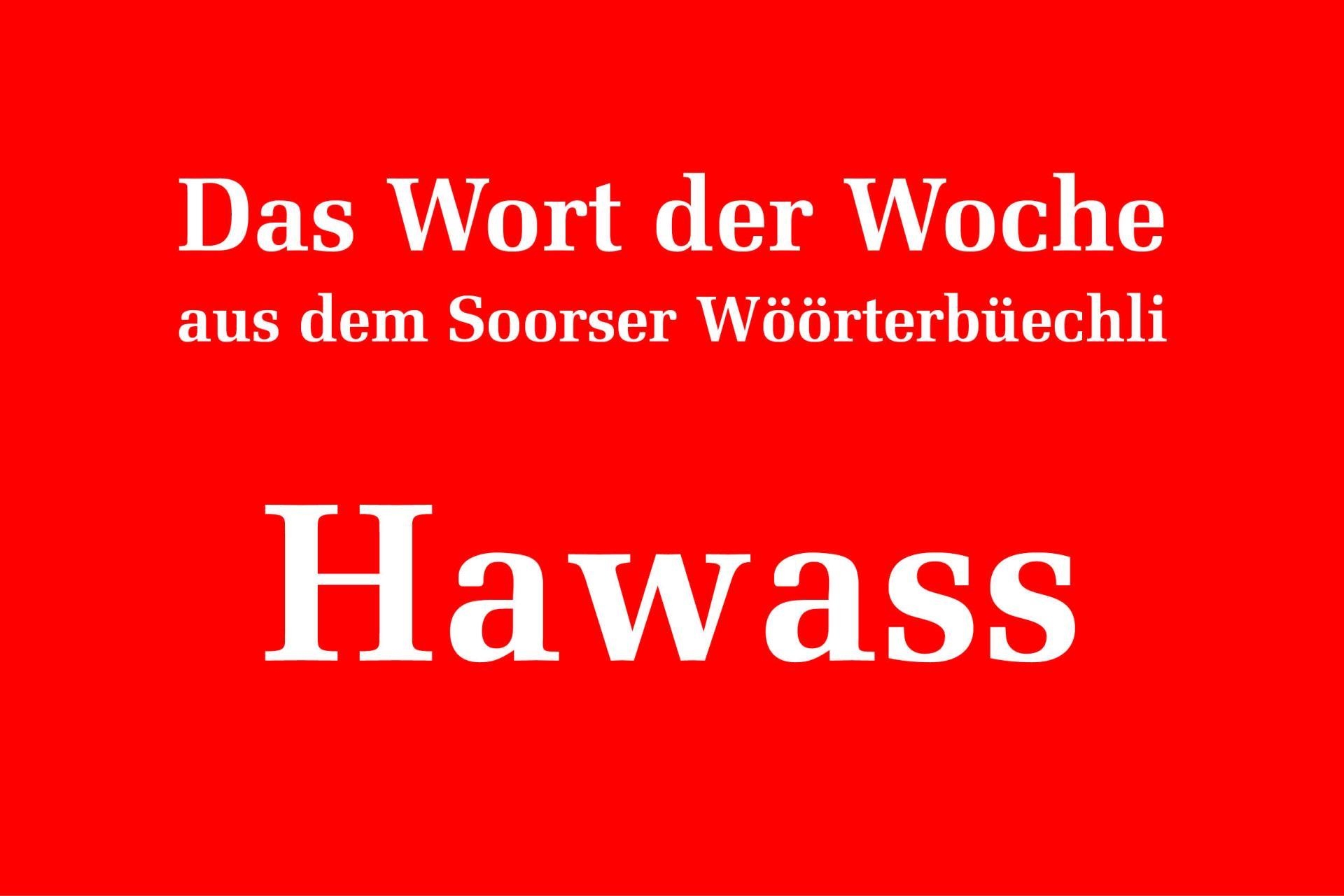 Gemäss dem «Soorser Wöörterbüechli»* bedeutet «Hawass» so viel wie Blödsinn oder Unsinn. Der Begriff ist unter den Soldaten des Ersten Weltkrieges entstanden und geht auf die frühere französische Nachrichtenagentur «Havas» zurück, deren geschönte Meldungen oftmals angezweifelt wurden. Beispiel: «Verzöu ke Hawass!».