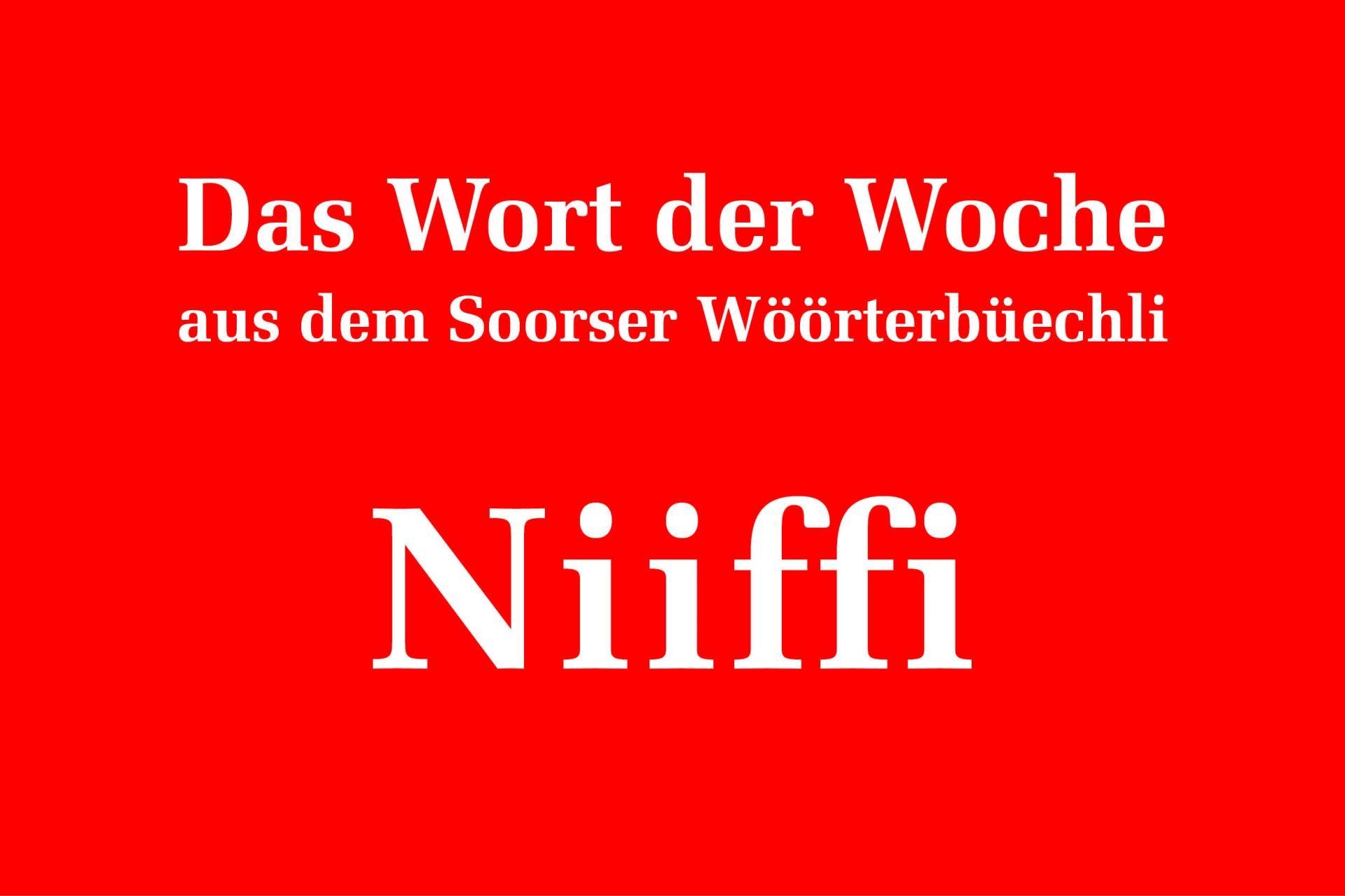 Laut dem «Soorser Wöörterbüechli»* bedeutet «Niiffi» Grimasse, verzogenes Gesicht. Beispiel: «Si hed es Niiffi gmacht».