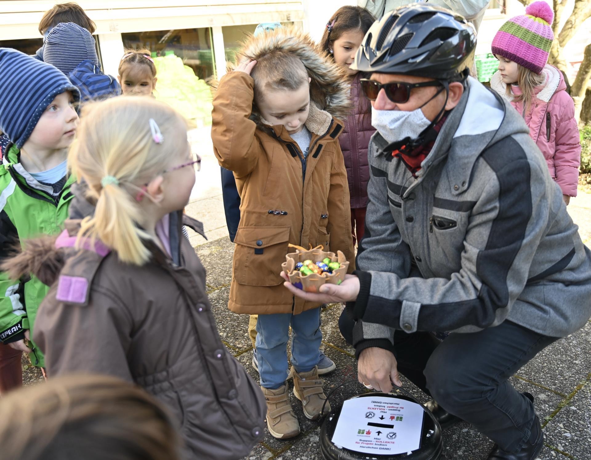 «Eine solch tolle Aktion, die muss ich unterstützen», antwortet er, wenn er gefragt wird, was ihn denn bewegt, in Sursee die Freitagssuppe nach Hause zu bringen. Auch wenn die Zeit drängt, denn die Suppe muss warm geliefert werden, nimmt sich der Bischof einen Moment Zeit, mit ihnen zu plaudern. Zur grossen Freude der Kinder und Erwachsenen.