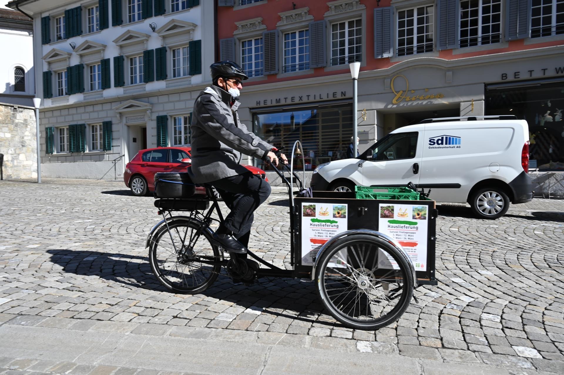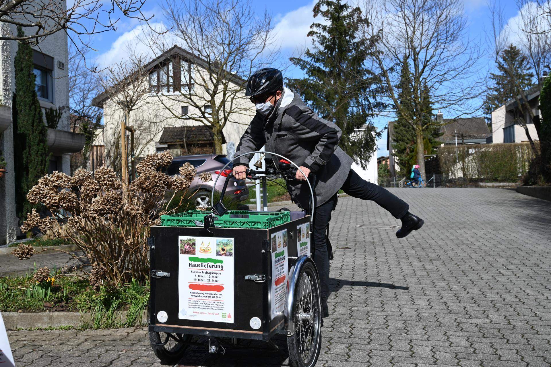 «Der Bischof steht vor der Tür.» So und ähnliches war am Freitag zum Mittagessen immer wieder zu hören, wenn dem Suppenkurier die Tür geöffnet wurde und Bischof Felix Gmür mit einem freundlichen, «en Guete» die Freitagssuppe überreichte. Er schwang sich zum ersten Mal in seinem Leben auf ein E-Bike und fuhr zu den Leuten.