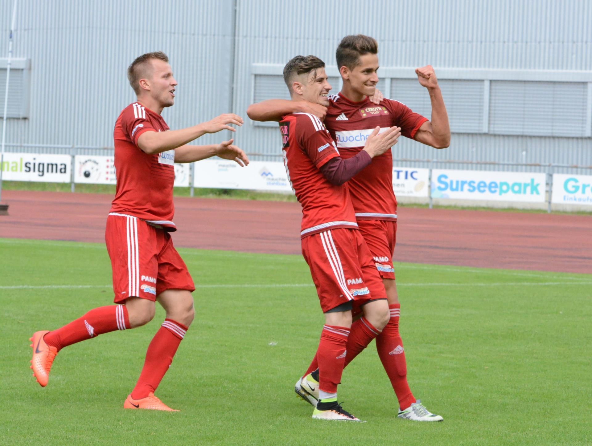 350 Zuschauer sahen im ersten Saisonspiel ein erster Sieg des FC Sursee. Peter Bolliger und Dominik Trost schoss das Team zum 2:1-Seig gegen Delèmont.