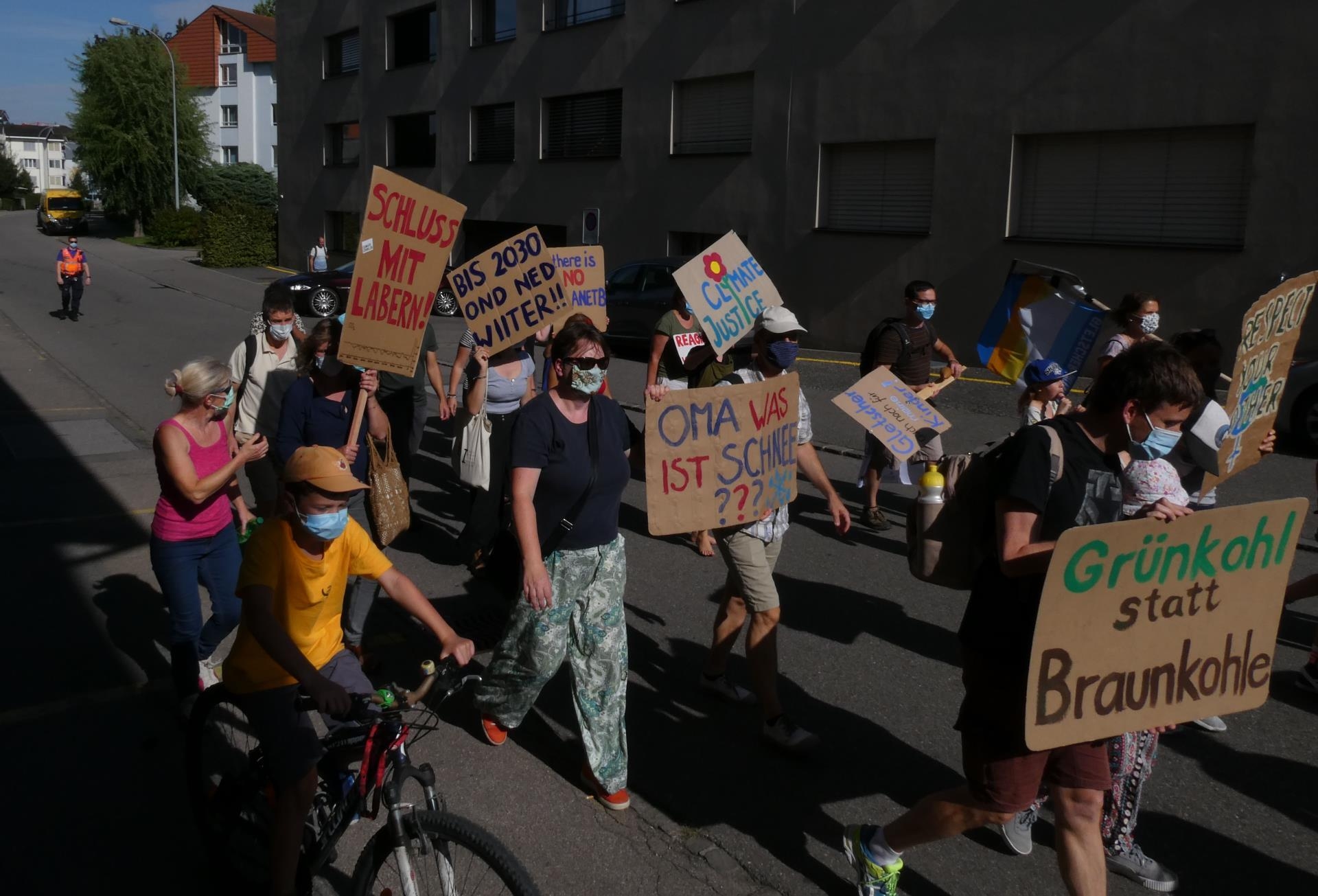 Nach der Begrüssung am Martigny-Platz marschierte die bunt gemischte Menschenmenge mit Plakaten ausgestattet am Bahnhof, der Migros und der Altstadt vorbei. Laut hörte man sie Parolen rufen, die Stimmung war friedlich.