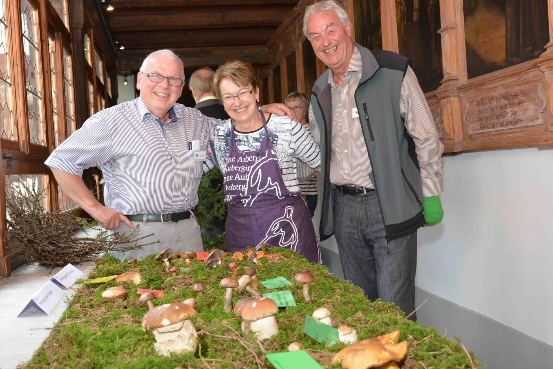 Präsident Willy Keller, Köchin Marianne Bieri und Markus Stöckli (Obmann technische Kkommission, von rechts) können mit dem Pilzevent im Kloster in Sursee zufrieden sein. Viele Leute sind gekommen. Allen gefiel die Ausstellung und der Risotto.