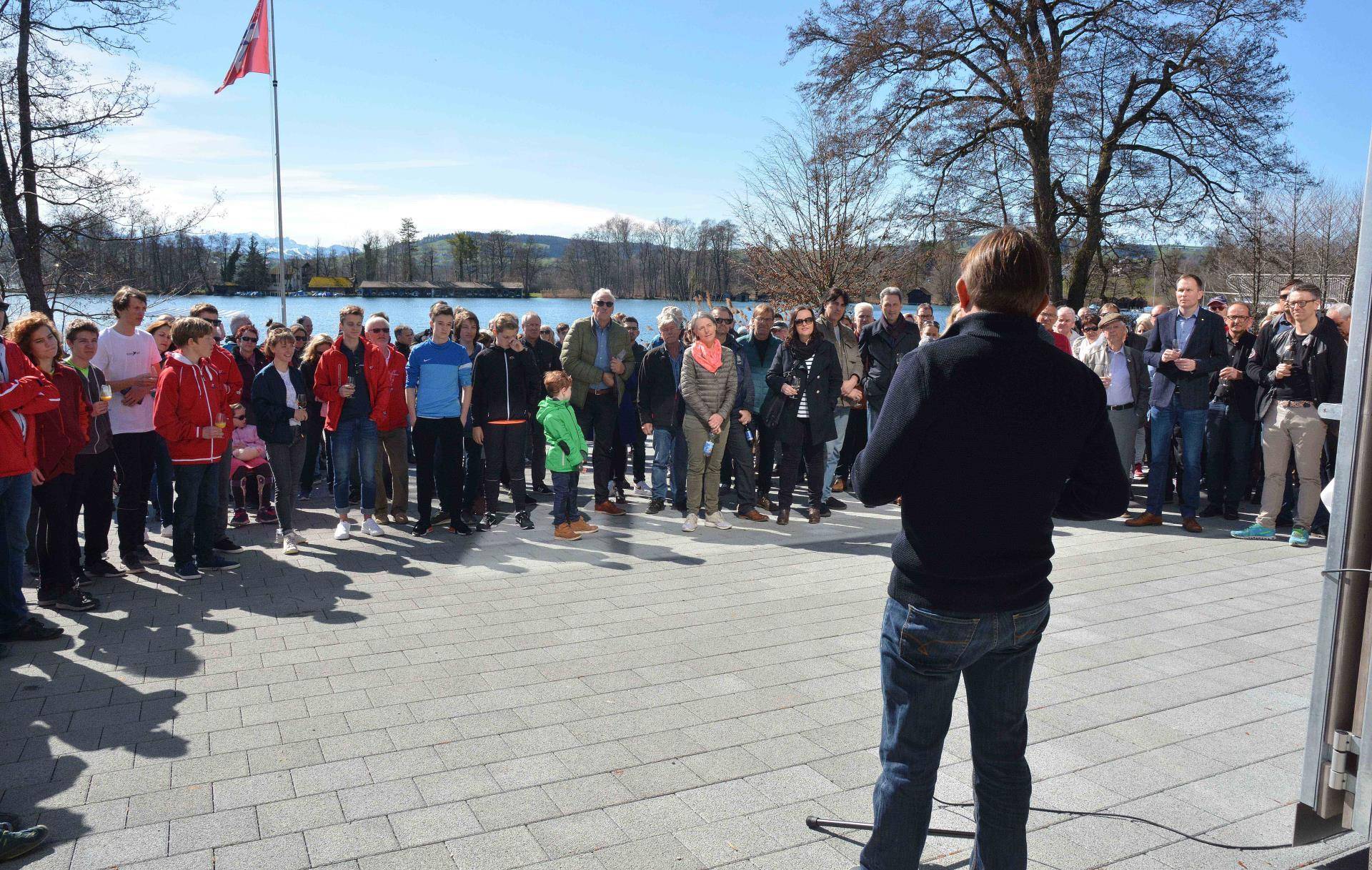 Nach dem Apéro vor dem Bootshaus sprach Franz Bieri seitens der Baukommission zu den Mitgliedern, Gönnern, Sponsoren, Vertreter der beteiligten Firmen und Gästen. «Eine Vision ist Wirklichkeit geworden», dankte er. Der Prozess habe allerdings lange gedauert. Bieri verglich diesen Weg mit den Ruderern. «Jeder hat Stärken und Schwächen. Zuletzt sitzen wir in einem Boot und sind ein Team.» Und nur das Resultat zähle.