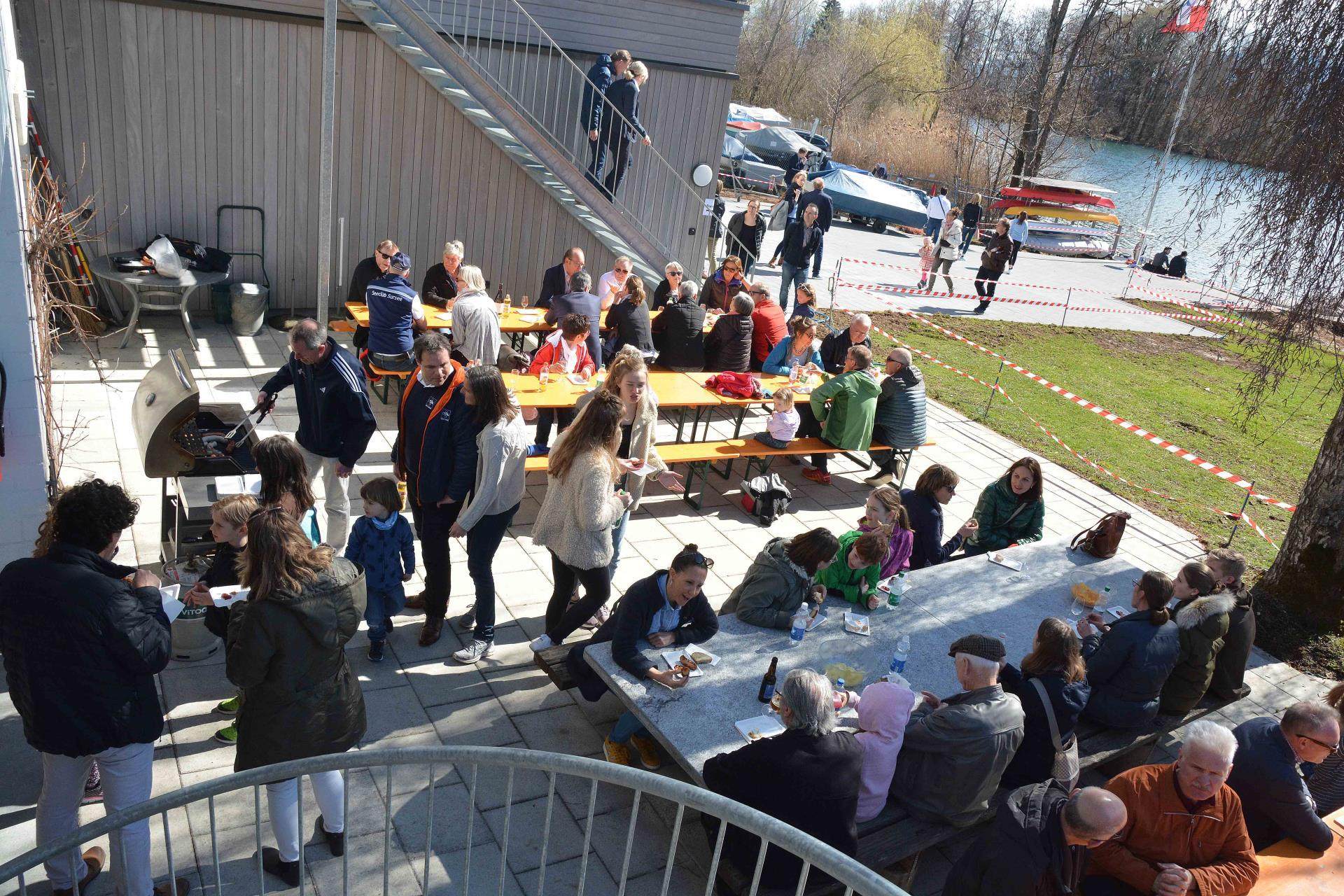 Bevor sie zu Wurst und Brot einlud, dankte auch Annemarie Lüthy. «Es ist ein Privileg, den Schlüssel des neuen Bootshauses – ein richtiges Bijoux – übernehmen zu dürfen.» Besonders erwähnte sie das Prunkstück, den Fitnessraum mit Ergometern. «Das Ergometerlern ist nun wie ein Spassprogramm auf einer teuren Ferieninsel.» Die Aussicht auf den See ist dort oben phänomenal beeindruckend und motivierend. Mit «stosst an auf ein tolles Werk» beschloss die Präsidentin den offiziellen Teil.