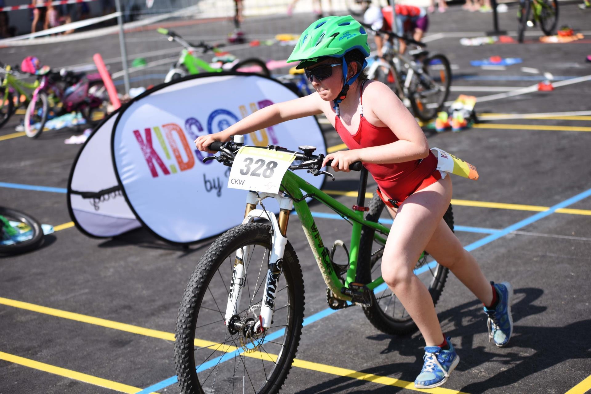 Unter den Augen des Campus-Schwimmlehrers Adam Thoroczkay schwammen die Kinder in der Sportarena zwischen 25 und 200 Meter weit. Aus dem Wasser ging es durch die Tür zur Wechselzone, wo die Velos bereit standen, ehe es auf die Strecken zwischen 600 und 1500 Meter ging. Zum Schluss wartete die 200 bis 800 Meter lange Laufstrecke, bevor die Kinder ihren Zieleinlauf vor dem Hallenbadeingang feiern durften.