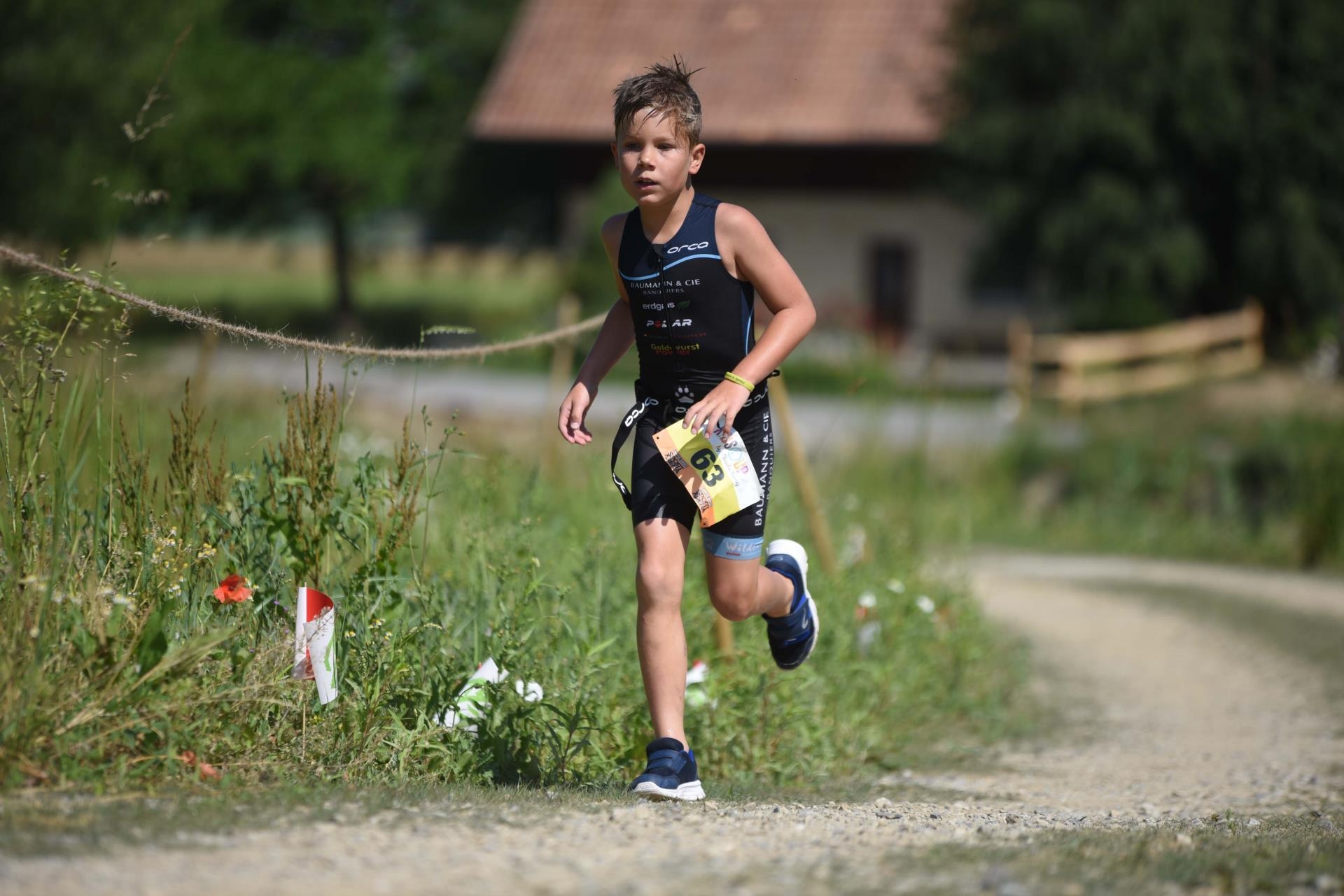 Auf der idyllischen Laufstrecke vor der Sportarena gaben die kleinen Athleten ihr Bestes. (Foto Manuel Arnold)