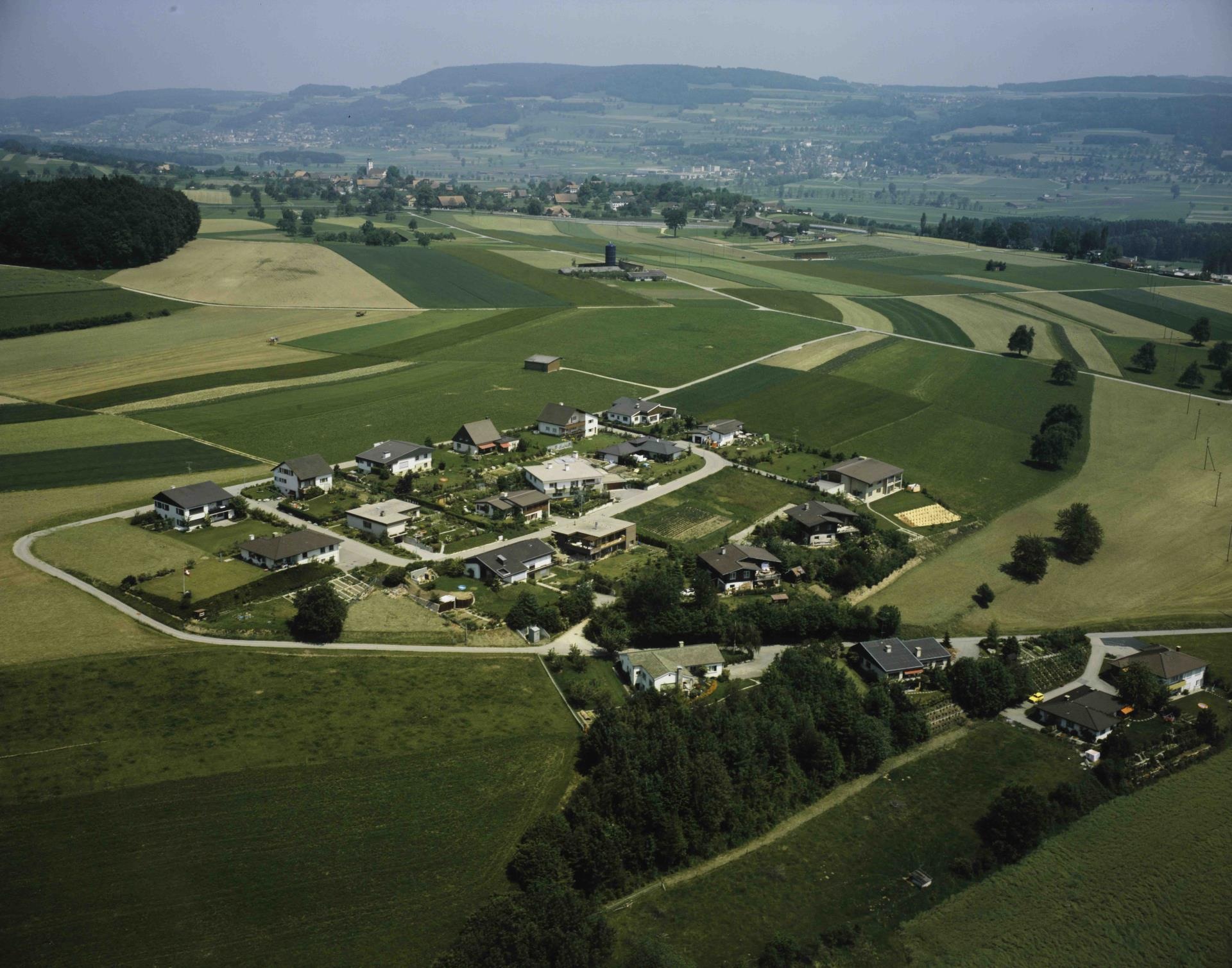 Der Wiberg in St. Erhard ist ein junges Wohngebiet. In den Siebzigerjahren kam der erste Schub, der rund zehn Jahre dauerte. Auf dem Foto vom 2. Juni 1981 sieht man, dass noch Baulücken klaffen. Nach der Einzonung ab der Jahrtausendwende kam die zweite Welle. Auf dem Foto ist das unbebaute Gebiet rechts heute fast ganz mit Wohnbauten übersät.