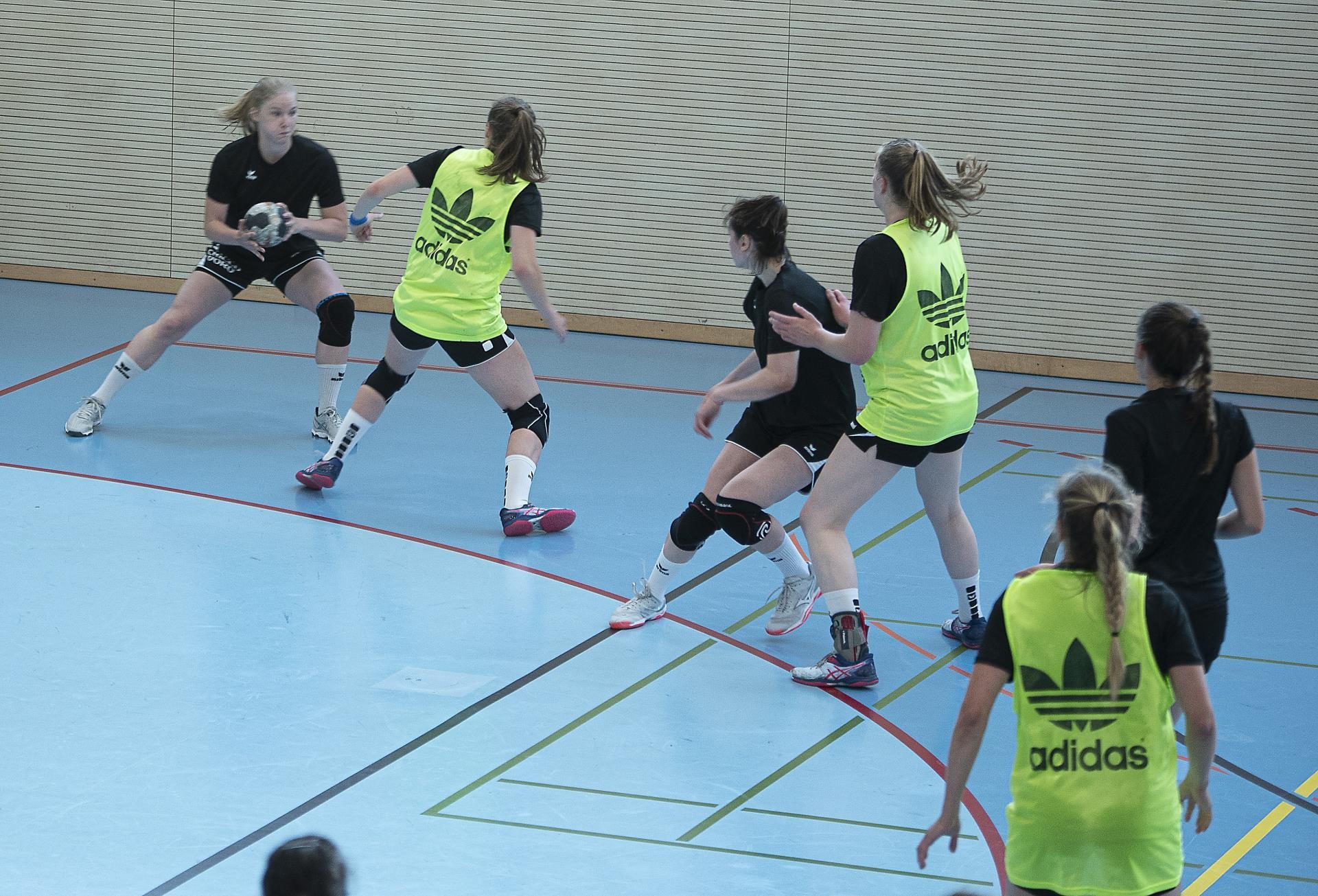 Beim Blick aus der Entfernung in die Halle unten ist kein Unterschied zu einem Training vor der Coronakrise erkennbar. «Spitzensport» ist ausgeklammert von der Abstandsregel, sonst wäre der körperbetonte Handball eine Farce. Aber die Schutz- und Hygienemassnahmen vor und nach dem Training sind strikt einzuhalten. Die sportlichen Frauen schonen sich nicht und gehen im Trainingsspiel hart zur Sache. Handball halt. Nach acht handballlosen Wochen besteht ein Nachholbedürfnis.