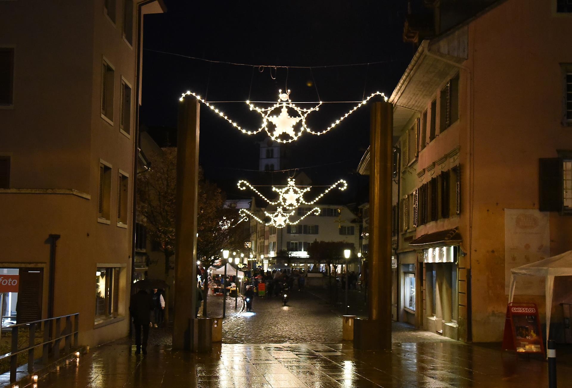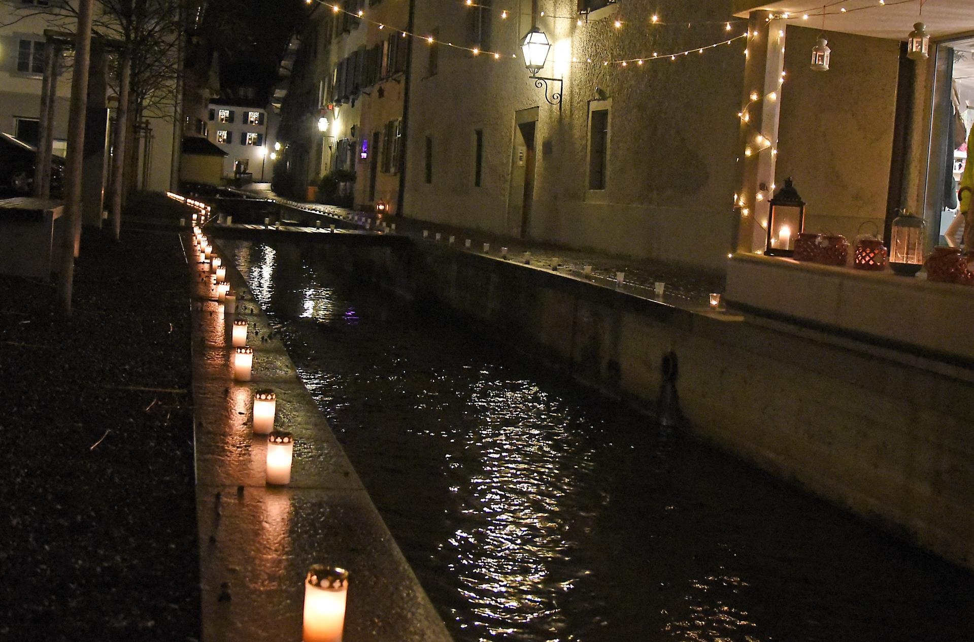 Regen war ein Thema bei der 4. Austragung von Altstadt im Lichterglanz. Bild: Foto Thomas Stillhart