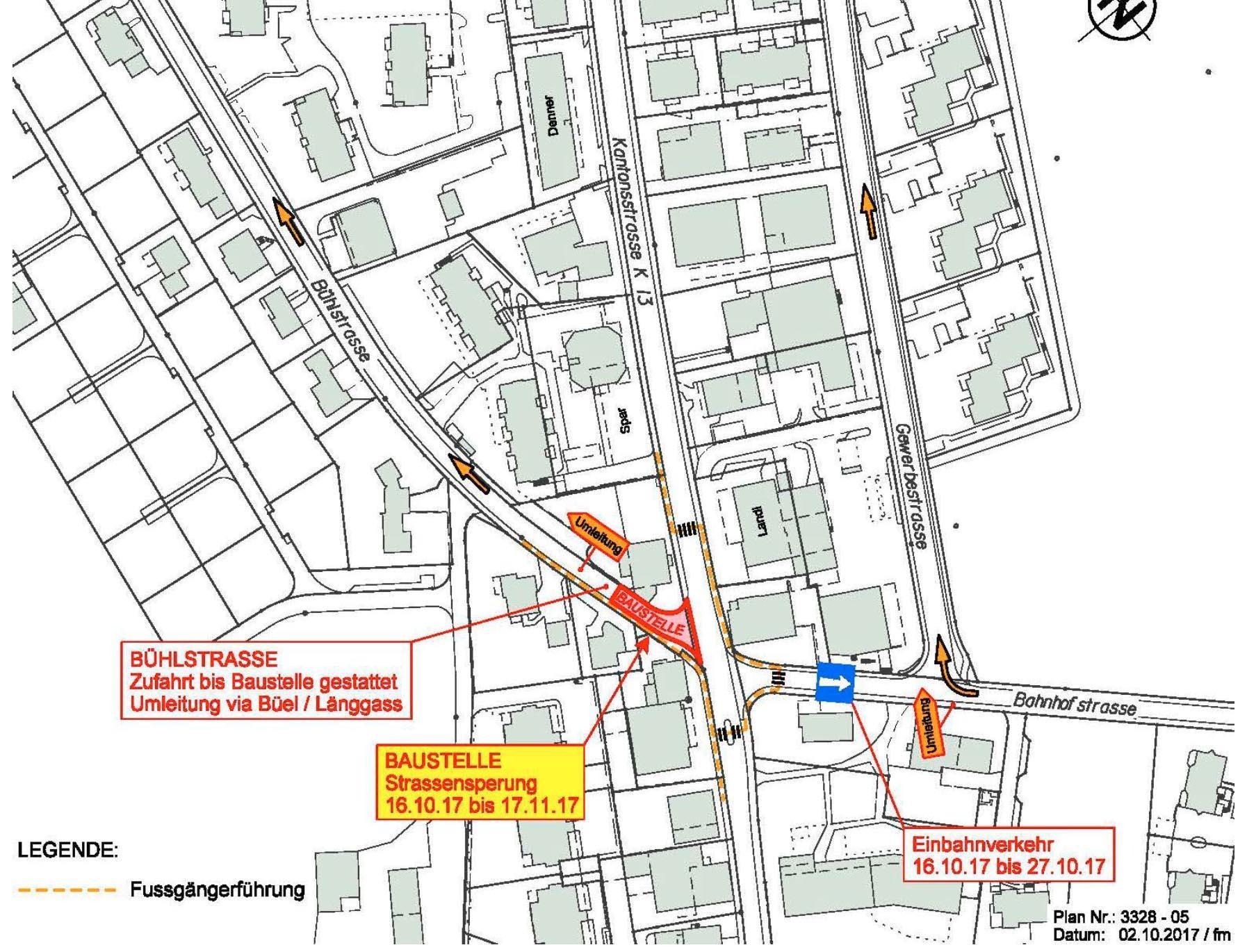 Die Bühlstrasse in Nottwil ist vom 16. Oktober bis 17. November für den Verkehr nicht durchgehend befahrbar. Fussgänger und Velofahrer können in einem gesicherten Korridor die Baustelle durchqueren oder werden örtlich um die Baustelle geleitet. Von der Sperrung betroffen ist auch die Buslinie 62 Sursee-Nottwil-Ruswil. Benützer dieser Verbindung müssen auf die Linie 65 ausweichen.