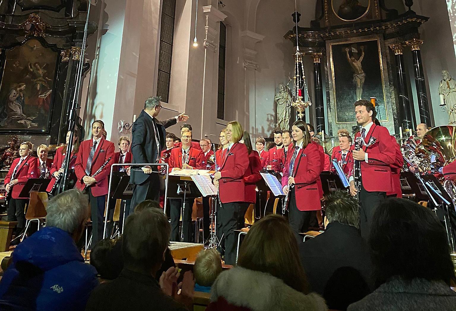 Das offizielle Konzertprogramm wurde mit «Septimos» beendet, und das Orchester zeigte nochmals die musikalische Spielerei von schnellen Rhythmuspassagen und gekonnt gespielten Chorälen. Die Zugabe resultierte in einem Höhepunkt: Das Spiel der Feldmusik Triengen wurde mit der Lichtkunst von Jonas Gassmann untermalt. Das Publikum honorierte den Auftritt nochmals mit grossem Applaus. Zum Abschluss musizierten das Publikum und das Orchester gemeinsam und sangen zwei Weihnachtslieder. Anschliessend unterhielt man sich im Kreis der Feldmusik draussen bei Glühwein, Punsch und Lebkuchen.