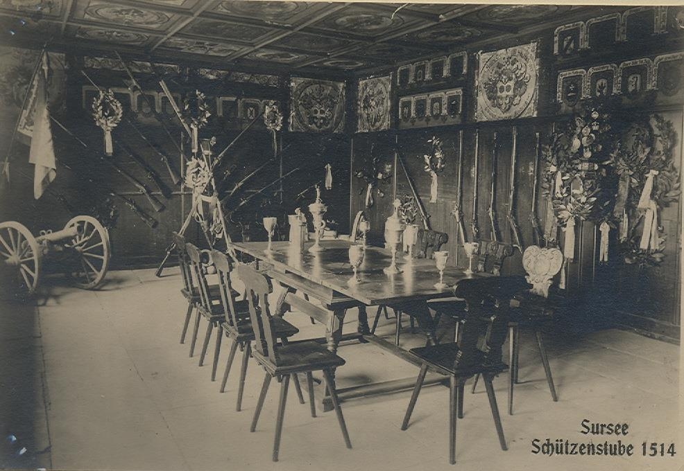 1819 gründeten in Sursee in paar Männer die Schützengesellschaft Sursee. 200 Jahre später, am Samstag, 11. Mai, laden die Feldschützen von 9 bis 16 Uhr ein, die Schützenstube (im Foto vor 1949) neben dem Untertor zu besichtigen. Ein Apéro gibt es auch. In der Schützenstube gibt es viel zu bestaunen aus der 200-jährigen Geschichte.