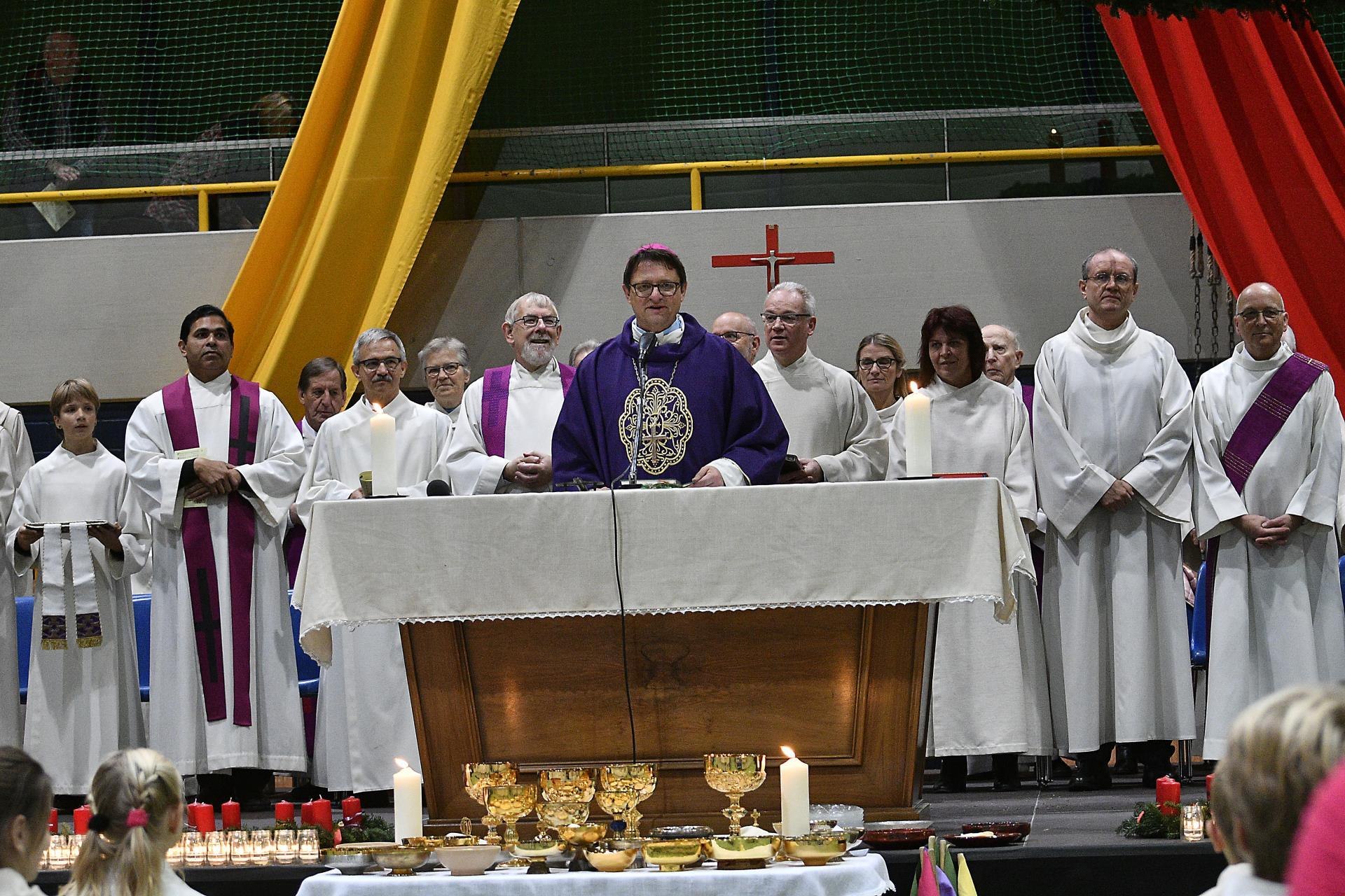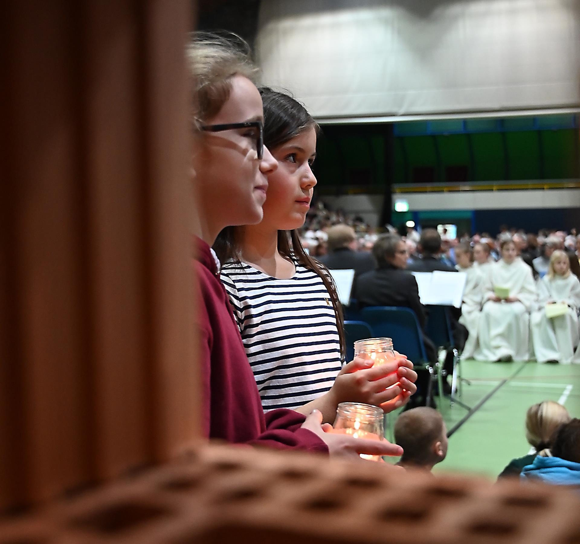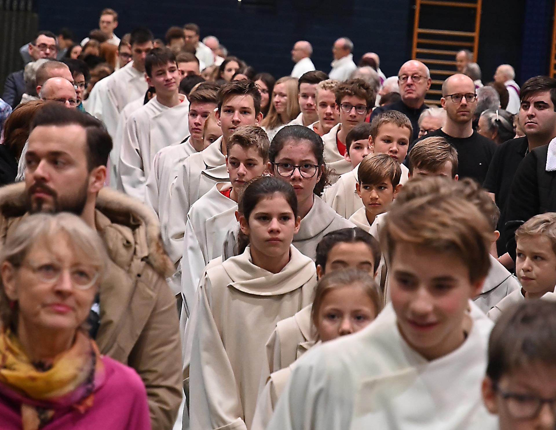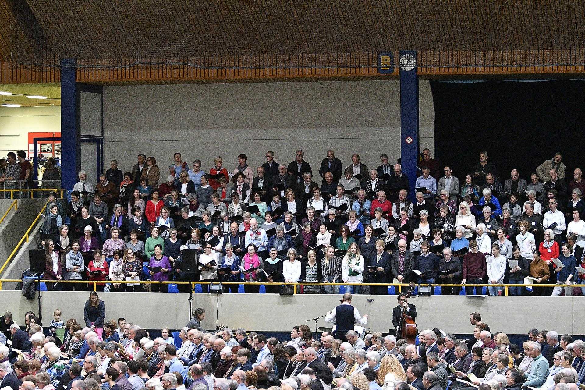 Sie strömten aus allen Nachbargemeinden und aus Sursee in die Stadthalle. Manche der über 2000 Christen fanden keinen Sitzplatz und standen während der 90-minütigen Errichtungsfeier auf der Tribüne. Einige Jugendliche sassen kurzerhand auf den Boden. Sie alle harrten dennoch aus und wurden mit einem jugendlich geprägten Gottesdienst belohnt.