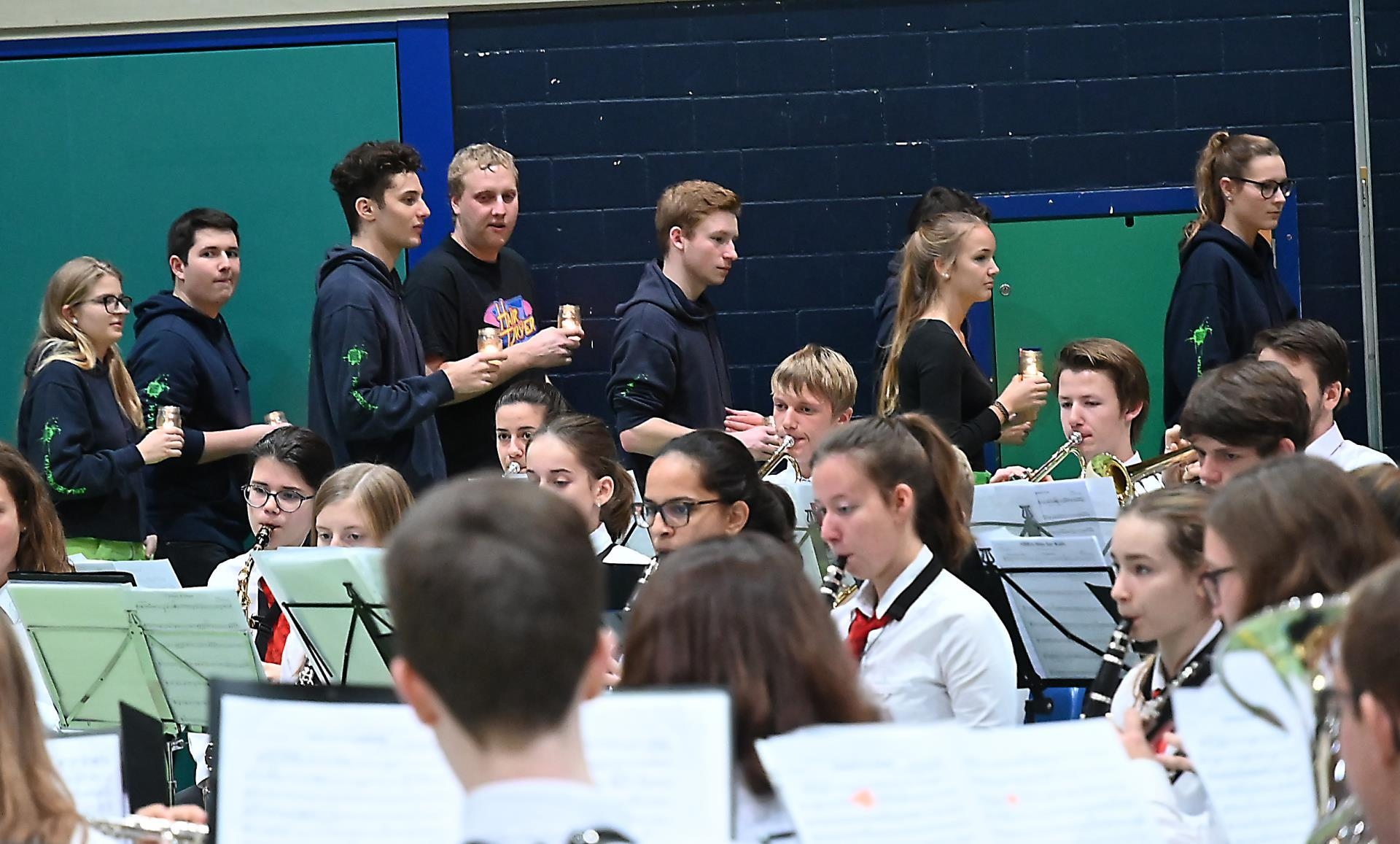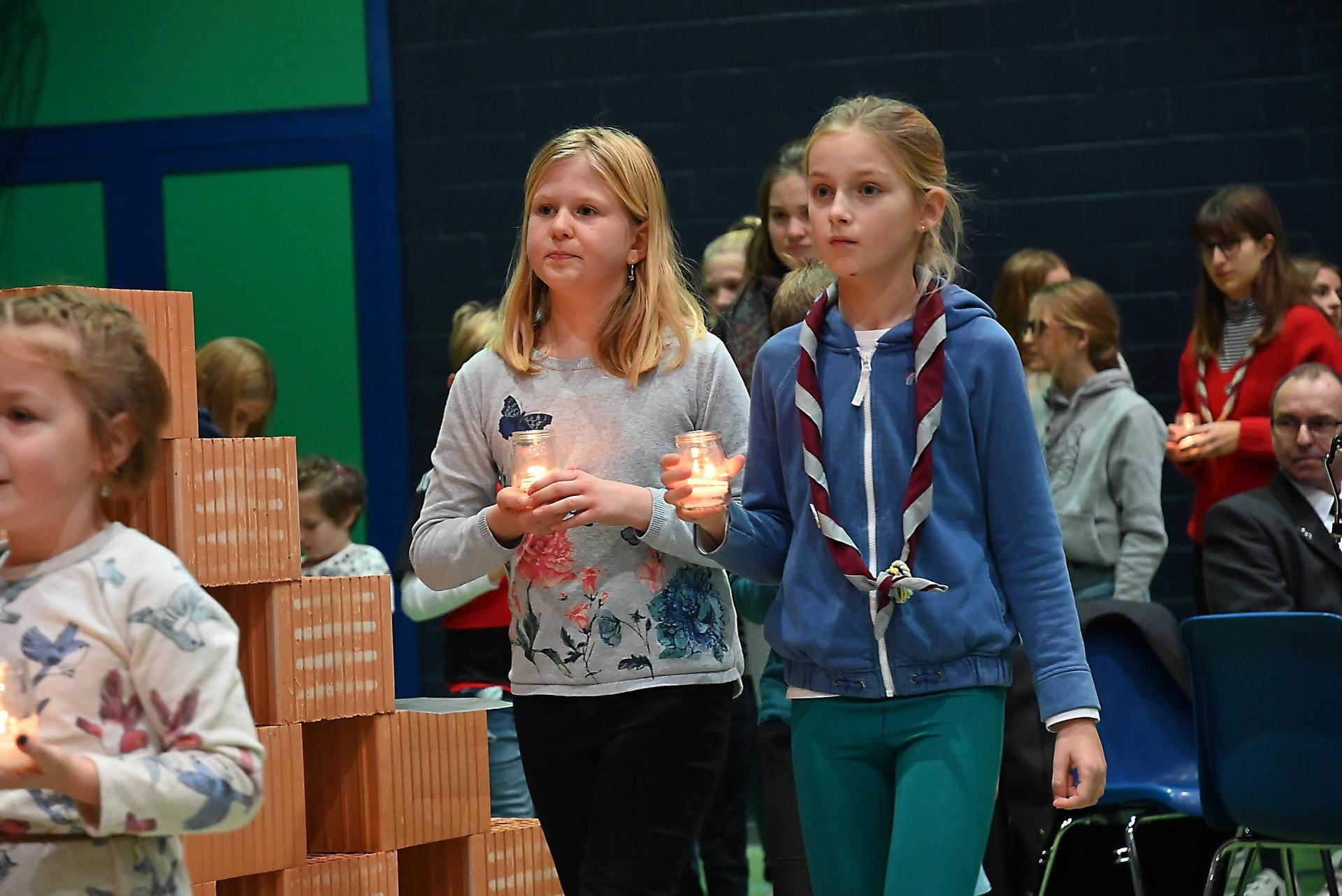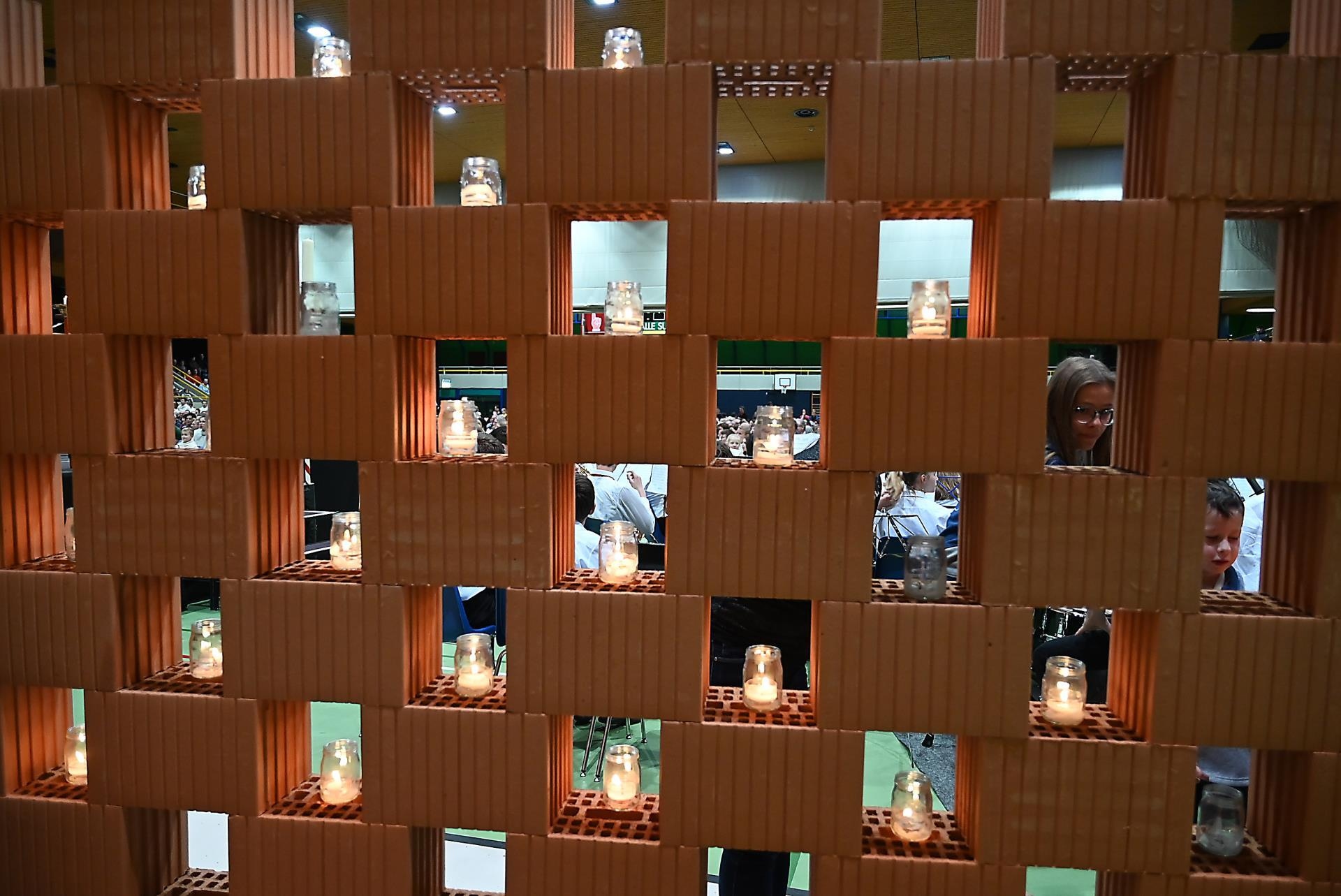 Und schon ging der Einzug weiter. Jetzt schritten Kinder, Jugendliche und Erwachsene mit über 300 Kerzlein an die Wand voller Backsteine und brachten Licht. Symbolisch zündeten sie den Pastoralraum Region Sursee an. Claudio Tomassini kommentierte: «Dass alle Menschen auf dem Weg sind, ist ein Zeichen, dass ihr setzt.»