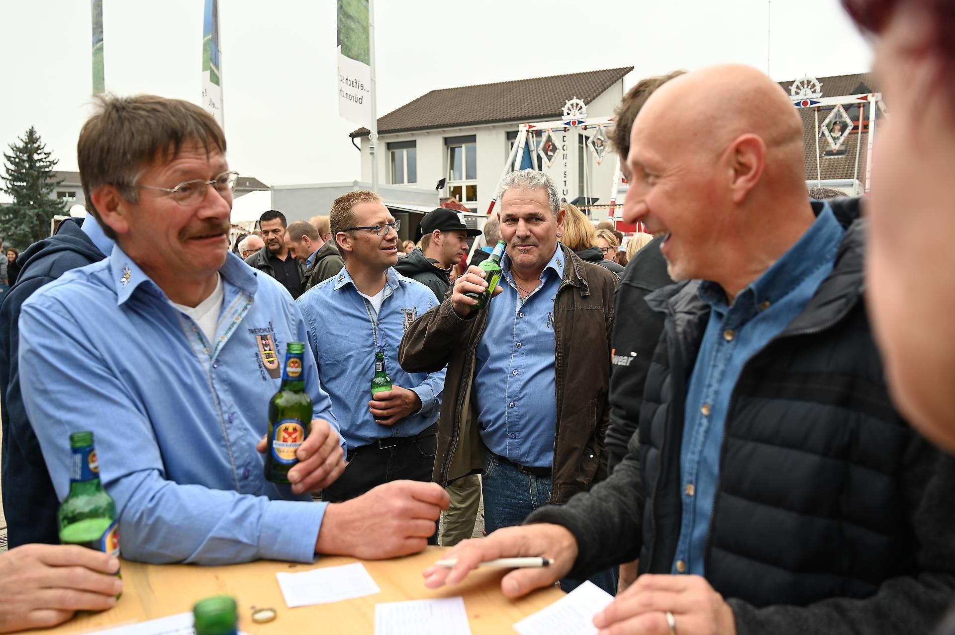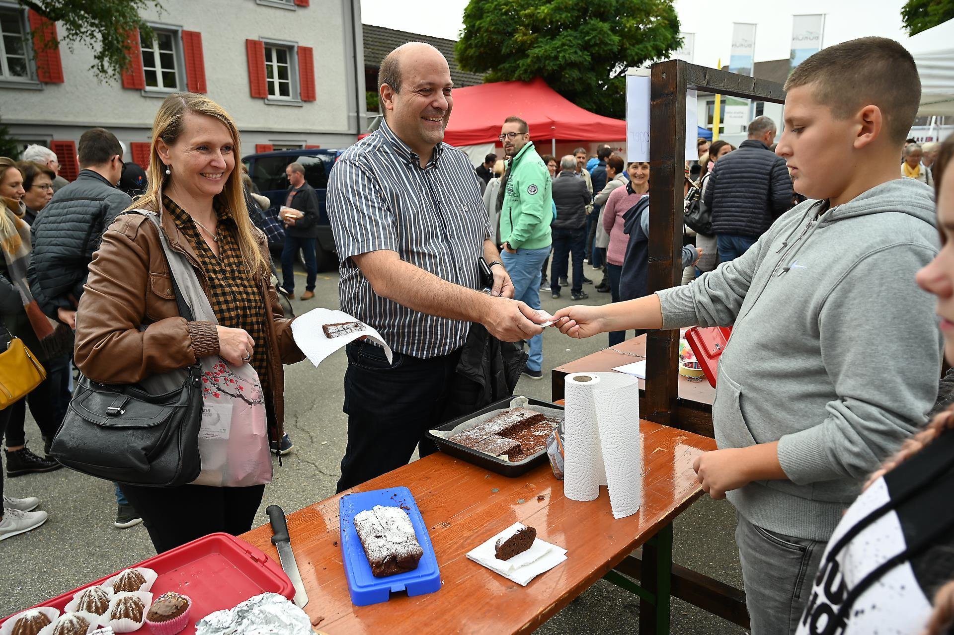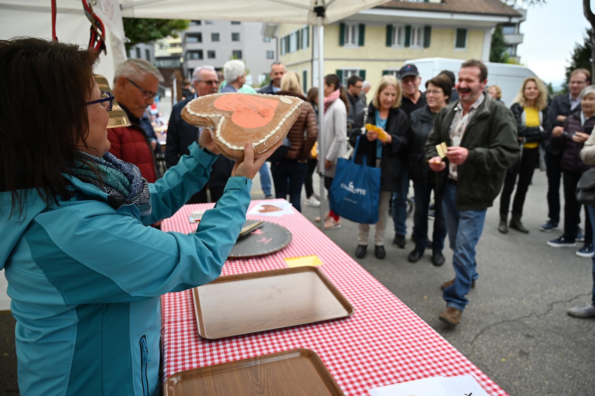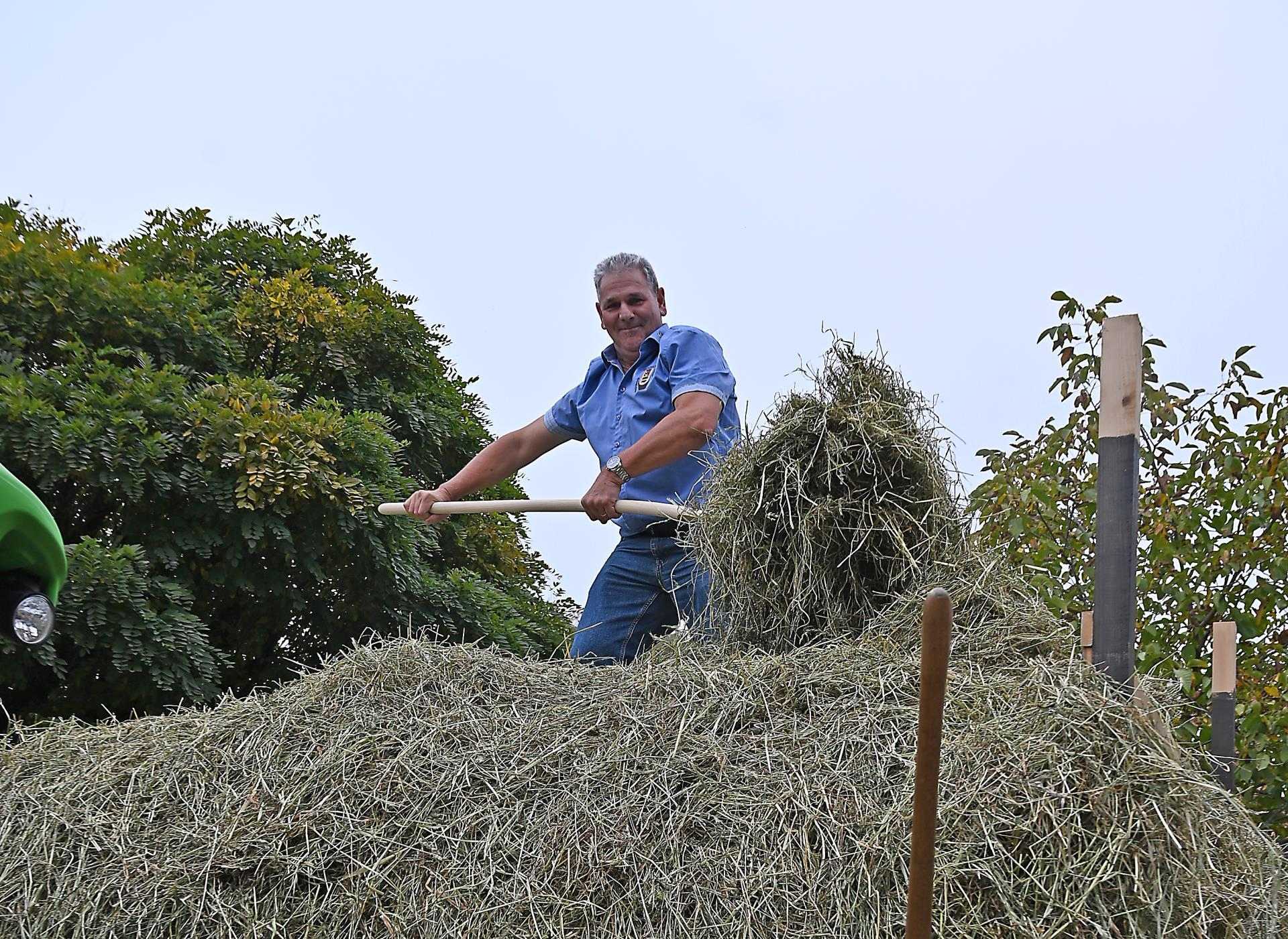 Unübersehbar stand mitten auf dem Platz auch ein Traktor mit einer Ballenpresse und daneben ein grosses Fuder Heu. Der frische Duft des Heus verriet, da hat die Treichlergruppe Büron wieder eine Attraktion geplant. Präsident Stefan Vonesch sagte dazu: «Jetzt kann man raten, wie lange es dauert, bis das Heu auf dem Wagen in kleine Ballen gepresst ist.» Bevor die Presse zu laufen begann, stieg der Präsident persönlich zur Freude der Anwesenden auf den Heuwagen und prüfte die Qualität des Heus. Vorerst aber stärkten sich die Kilbi-Gäste noch mit einem Kaffee und vom Stand der Kinder der sechsten Klasse mit einem feinen selbst gebackenen Stück Kuchen.