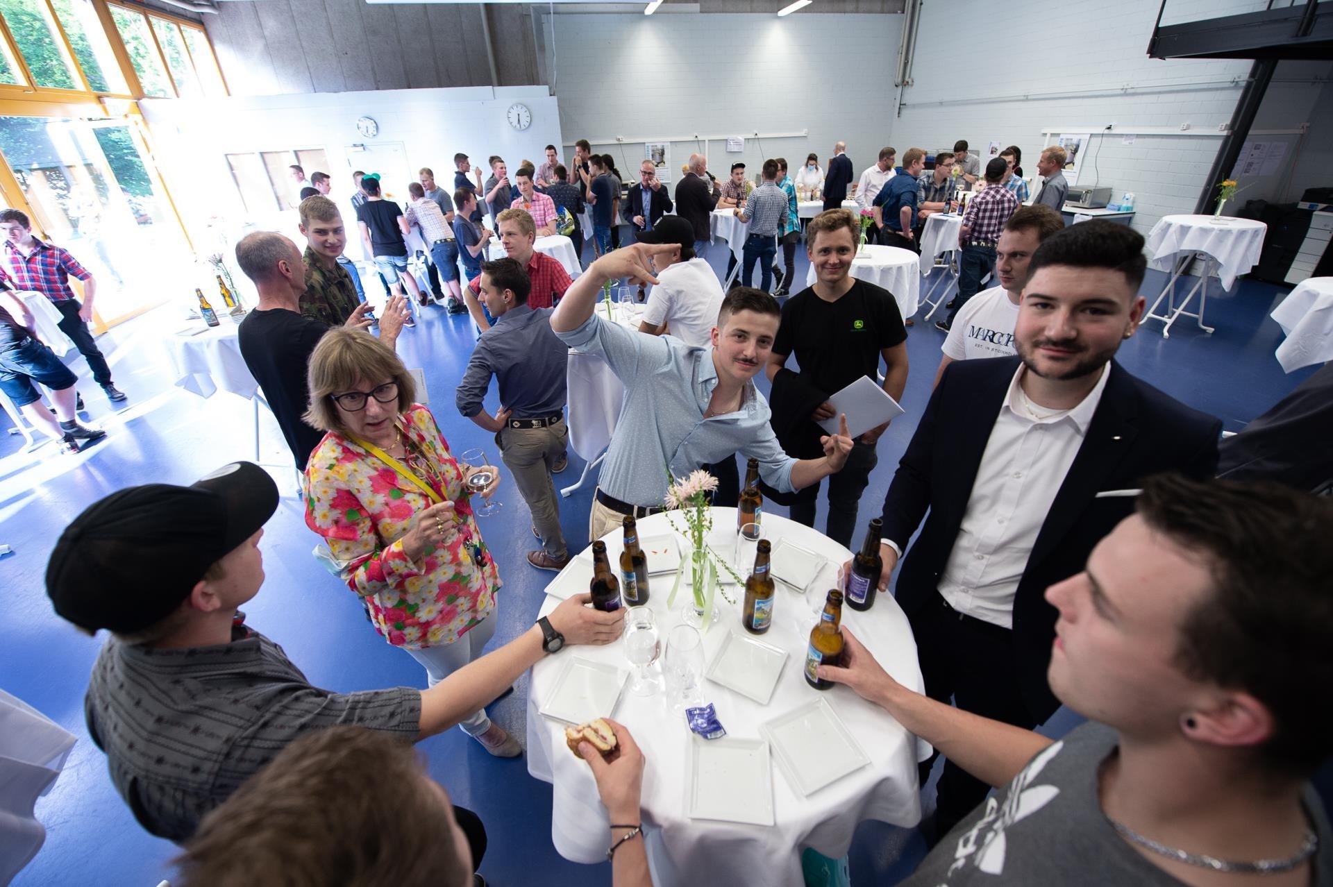Beim Apero wurde diskutiert, gratuliert und die Stimmung war sehr festlich. Auch den Lehrpersonen und Berufsbildner ÜK blieb die Zeit sich von den «Lernenden» zu verabschieden und ihnen für die Zukunft alles Gute zu wünschen.